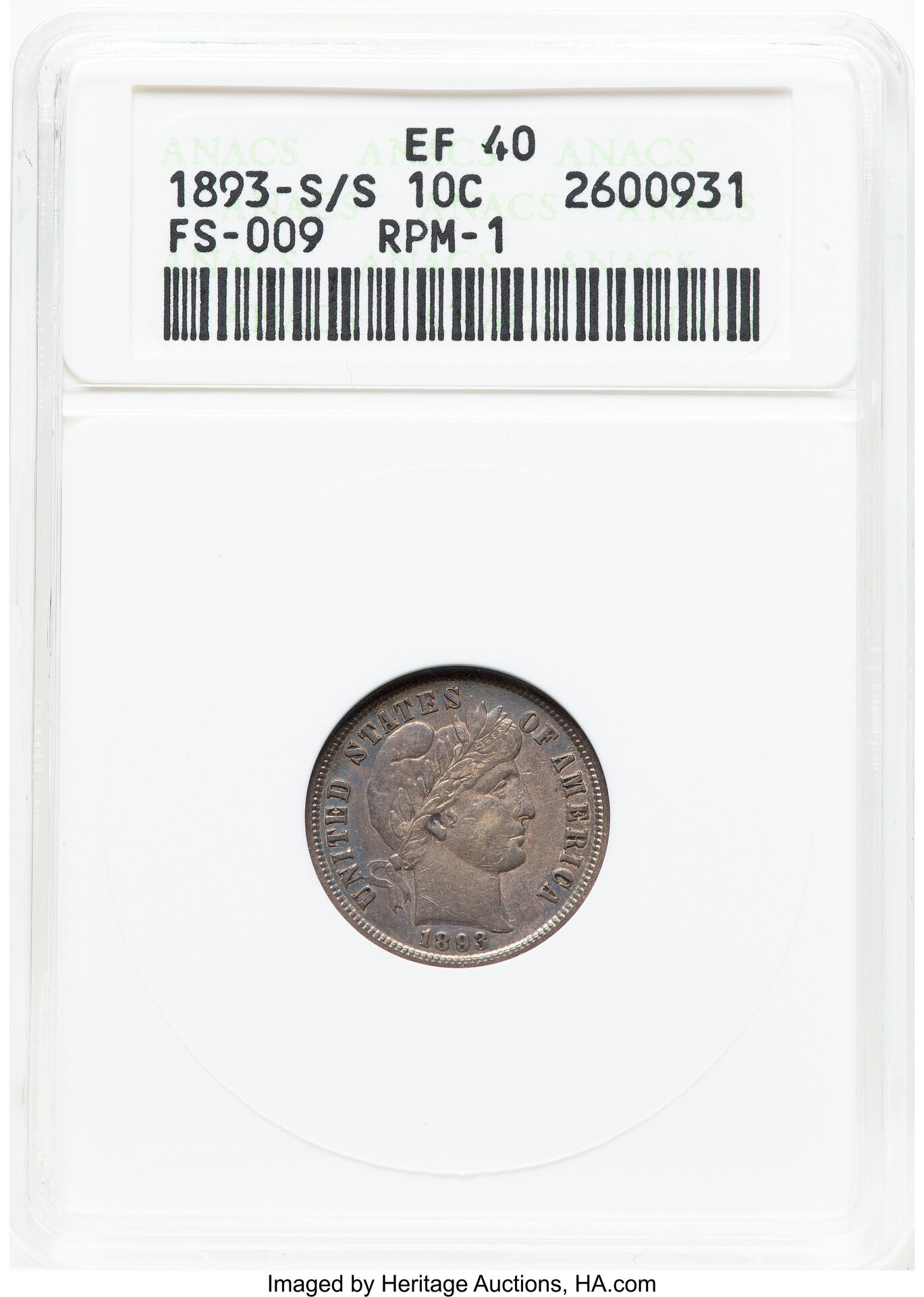 1893-S/S Barber dime