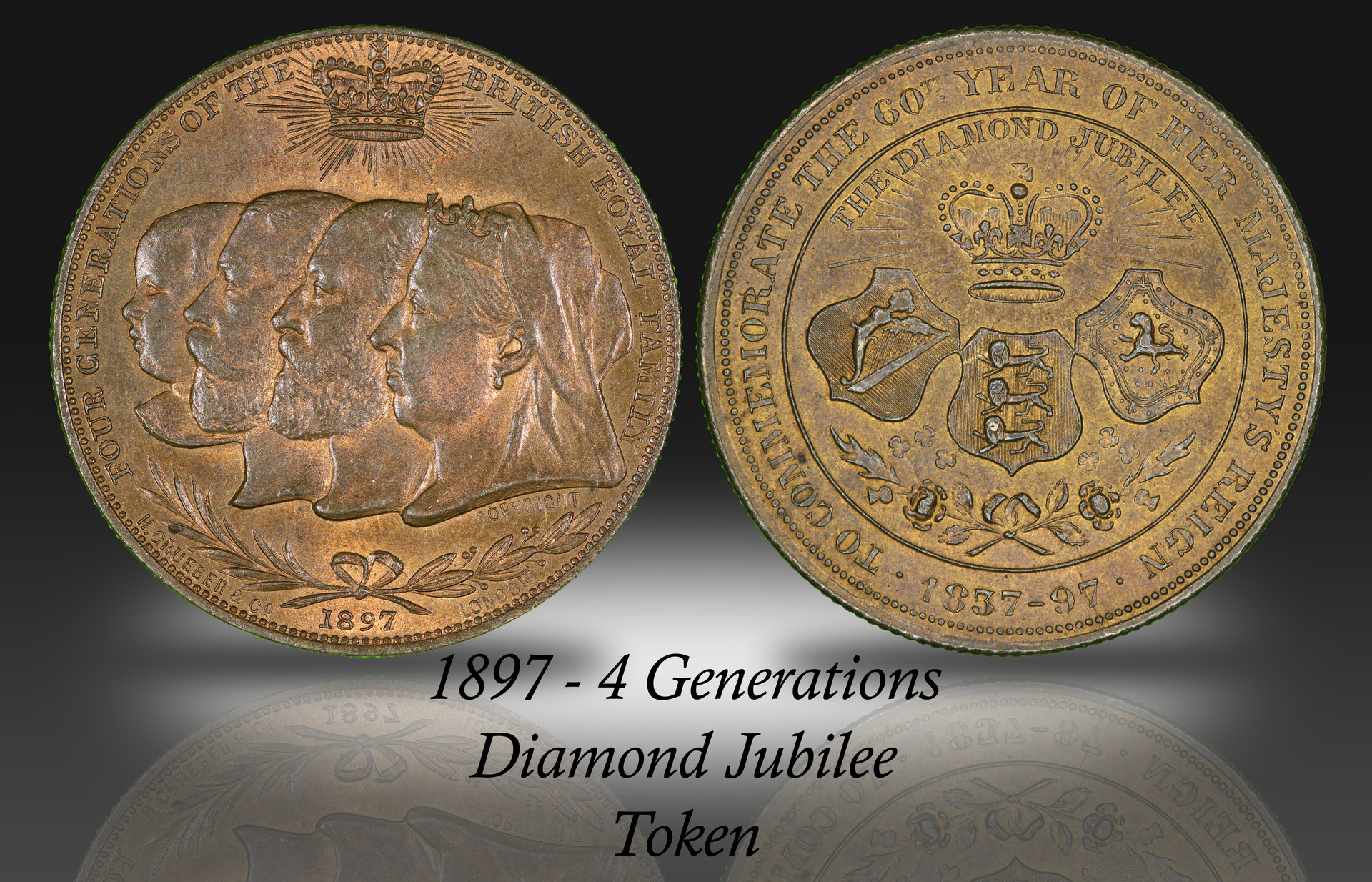 Over the years I picked up a lot of different and strange tokens. One type that has caught my interest lately is the commercial tokens issued at the time of Queen Victoria's Diamond Jubilee in 1897. Has anyone complied a catalog of these tokens? There appears to be several varieties with the 4 Generations of British Royalty obverse dated 1896 and 1897. These appear to come in farthing and half penny size. The obverse was engraved by H. Grueber. There are others such as the Bovril tokens which use the company logos only to congratulate the Queen on her Diamond Jubilee. If you have any information, please post it. I'm very interested in complying this information. http://www.britishmuseum.org/research/search_the_collection_database/term_details.aspx?bioId=51889