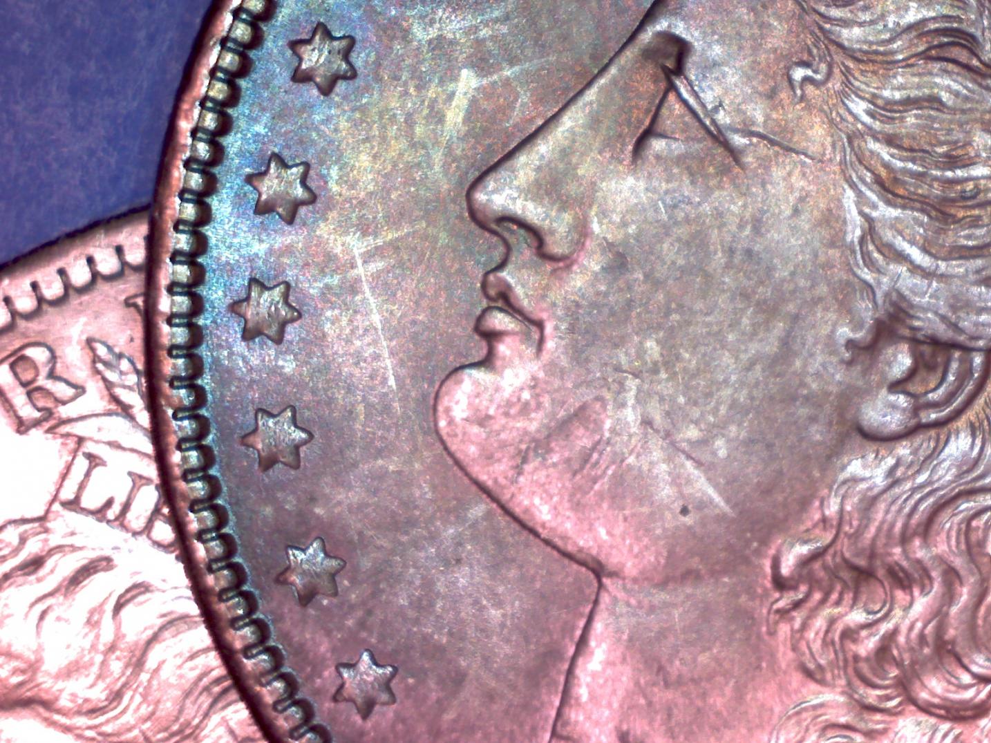 Thanks for the replies! Morgandude, could you see any that you'd like closer shots of? I've used my loupe & microscope on the coin & paid close attention to the high spots(lock above ear, lock above 18(86), Cap tip & breast. There are luster breaks(I assumed were from me trying to photograph her for 3 days with very poor lighting results). But if the concensus is circulated after magnification then I can list her as AU. Again, thanks.