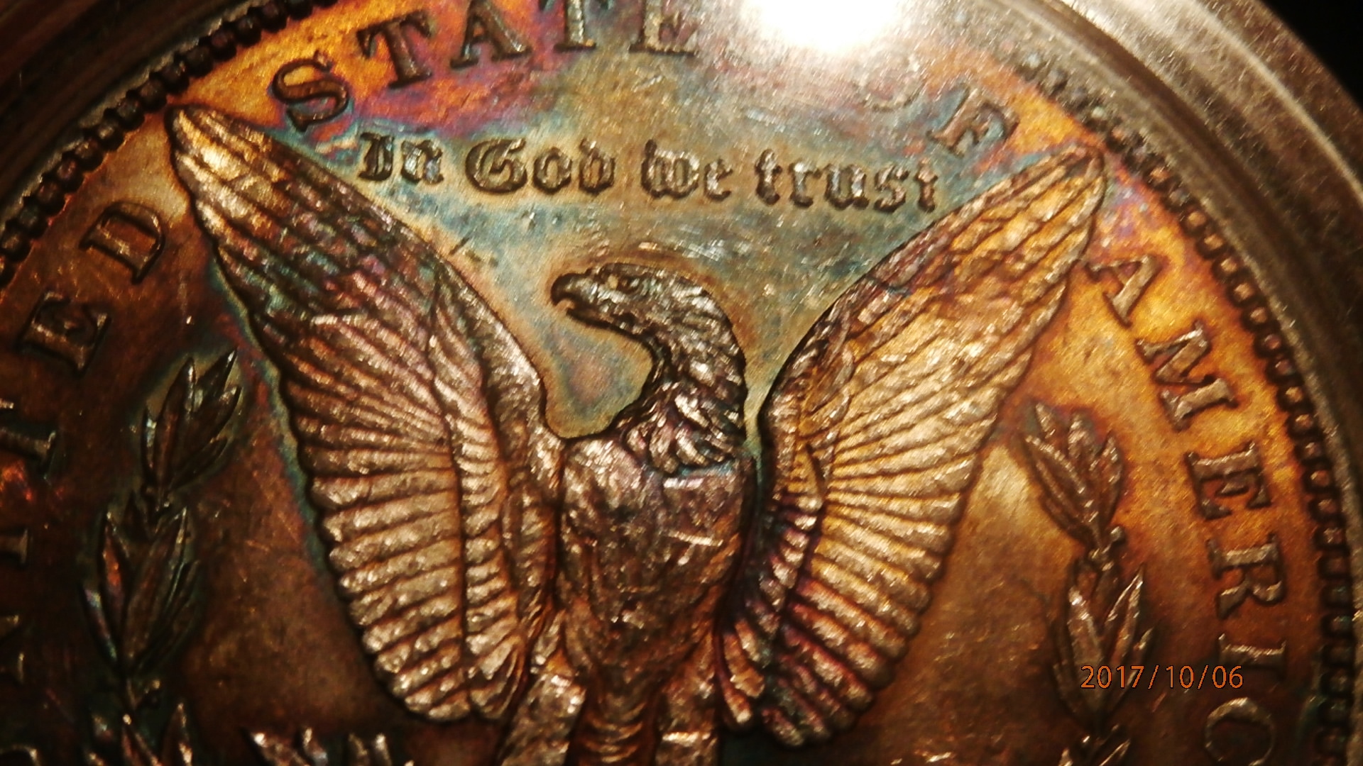 Thanks for all the replies and advice, here are more photos of this Morgan, to me it is like a hologram that shimmers and shines like on a credit card or back of a graded coin. check out the rainbow Morgans on e-bay, many outrageous and questionable ones, in graded slabs, there is no set pattern for rain-bowing. from what Ive seen this is all natural maybe some old collector out there will know for sure if AT or NT. Thanks for the feedback.