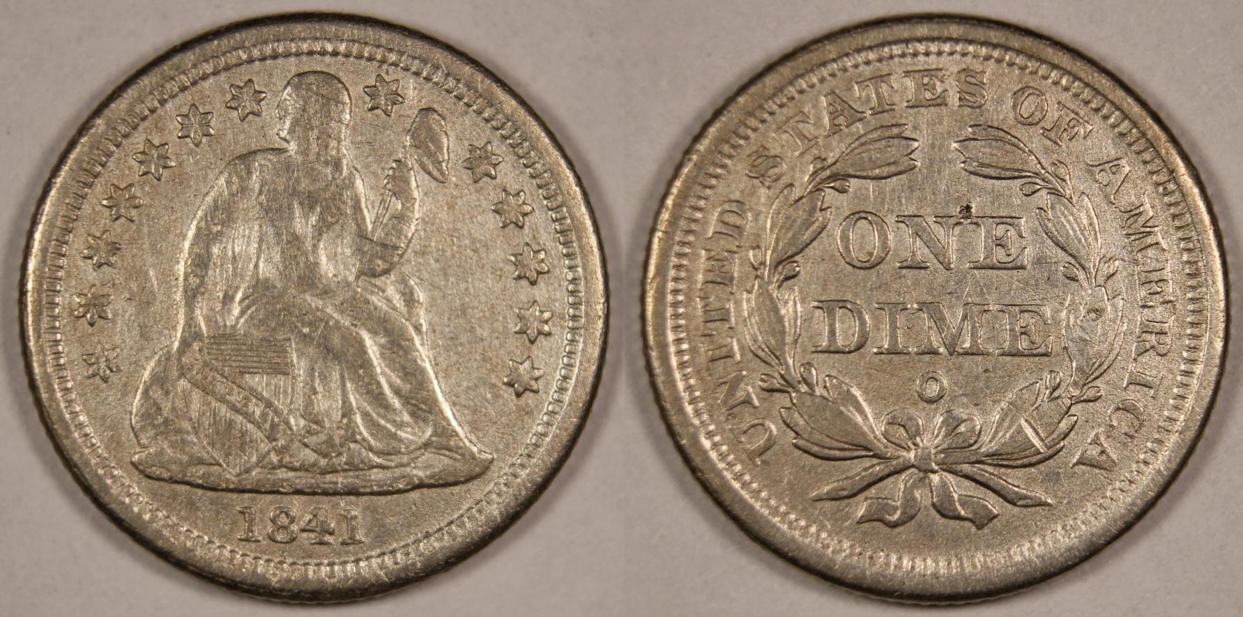 I have for sale an 1898 Indian Proof, an 1899 Barber Dime, and an 1841-O Seated Liberty Dime. I purchased these off of eBay in the past year and no longer want them. All of the my asking prices include free shipping. I will accept Paypal. The 1898 Indian Proof seems to have been cleaned. The pictures don't represent what the coin looks like in hand, they just show they many, tiny scratches on the surface. In hand, the coin looks great, you can only see the scratches if you hold it at certain angles to the light. The reverse is highly reflective with great rainbow colors. I know its hard to value and price cleaned coins, so I'm going to ask $100. The 1899 Barber Dime is an excellent coin. It is nice bright silver. I'm not sure whether it has been cleaned or not, you can make that judgement from the picture. (If you are sure that it either has or has not been cleaned, I would appreciate if you would let me know what you think) This coin appears to be in About Uncirculated condition. I am asking $60. The 1841-O Seated Liberty Dime has pretty grainy surface. This coin also might have been cleaned in the past. I would say its somewhere in the F-VF range in terms of the grade. It does have a small pit above the "one" and a medium sized gash in the bottom-left of the wreath on the reverse, as well as a few smaller gashes across the figure on the obverse. I am asking $35.