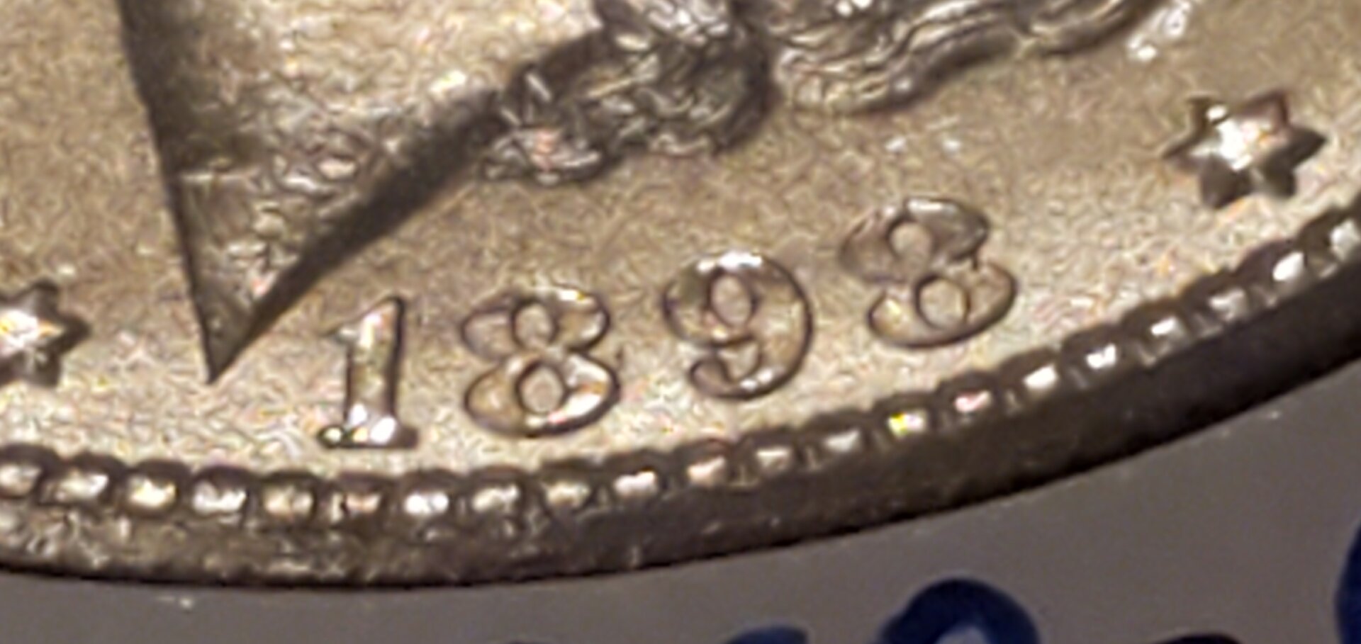 This 1898-O appears to be a near (or very near) date, with just a hint of doubling under the first 8 in the date. There's a mild die break on the reverse that I don't see mentioned for the variety - perhaps that means it's a late stage example? Thoughts?