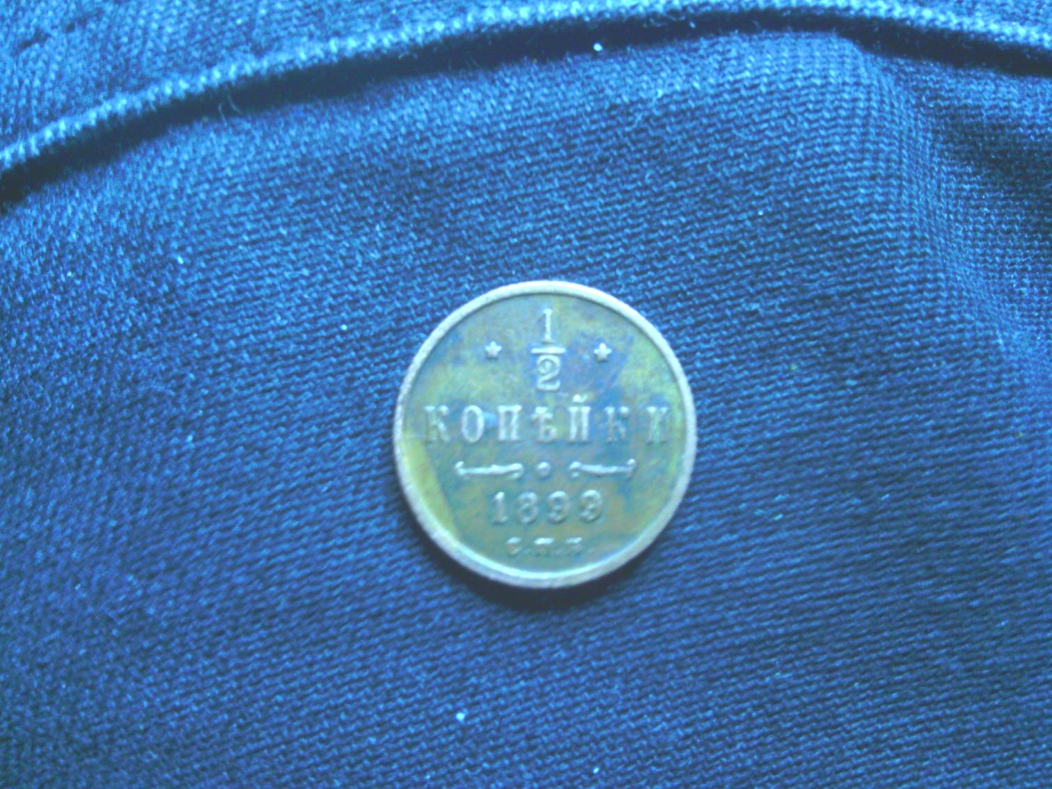 Haven't been on in a few days, but have returned with a need for outside opinions on one of my grab box finds. With the price of silver plummeting, the coin shop was empty, and the nice man who owns the place had no problem with me spending almost 3 hours picking through his foreigns with my list in one hand, and my looking glass in the other. Anyway, among finding 3 silver coins (yay) and a 25 cent proof from the Netherlands, I found an 1899 Russian half kopek that is missing some of the legend. Excuse the photography, but if you click and zoom, look at the fluer that wrap and loop outward and back in. The blossom areas that are below the banner have 3 points where the blossom is. They should have 5. The blossoms on the bottom have 5 points; they should have 6. My definition of "point" is where the buds would flair out. The fluer, meaning the pattern with the 3 diamonds that makes a sort of H. Here are the pics.
