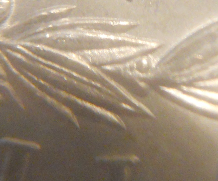There are other things going on with it... Ex: the "A" in Dollar is split, there are more of those lines/die gouges around the Eagle's legs, etc. I'm just not sure which oddities are more important compared to another. The front looks fine, except for a tiny mark on the lip.