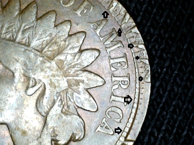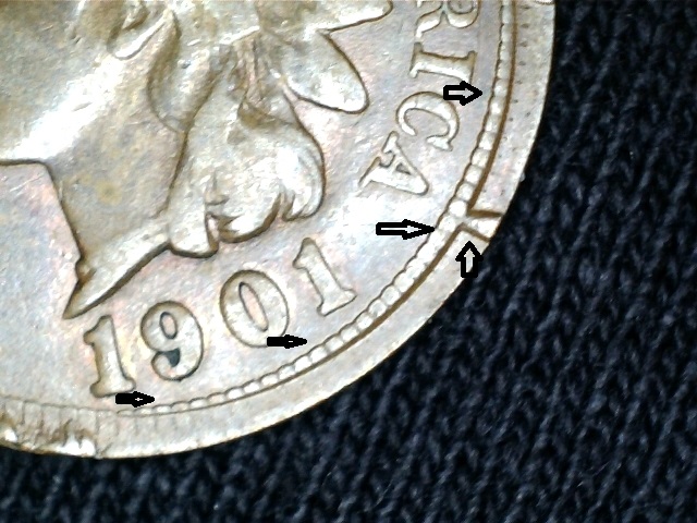 The ornamentation on the rim and denticles is from an advertising slogan stamped into a metal ring that once surrounded this coin. In other words, this is an "encased cent", and not a mint error. The doubling is Longacre doubling.