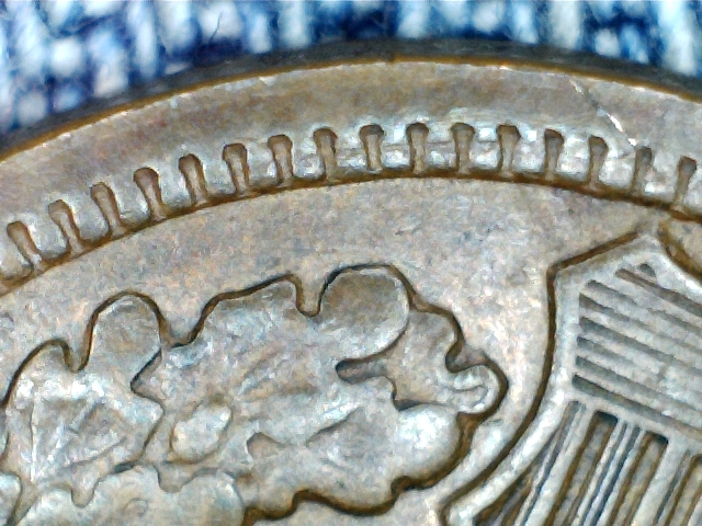 Removed from an encasement and what you are seeing on the rim are design elements from the encasement die that overlapped the edge of the coin. Probably from this encasement