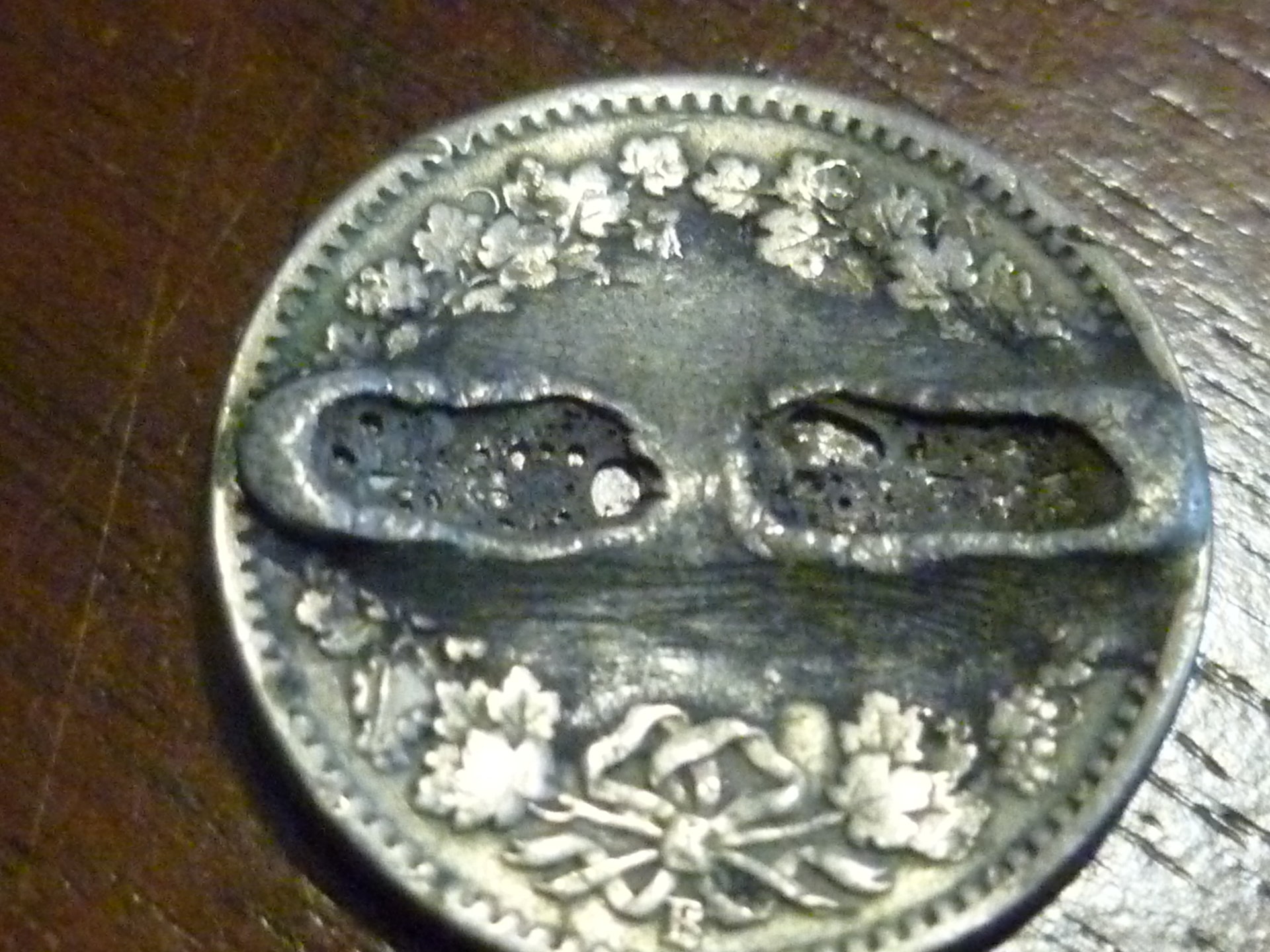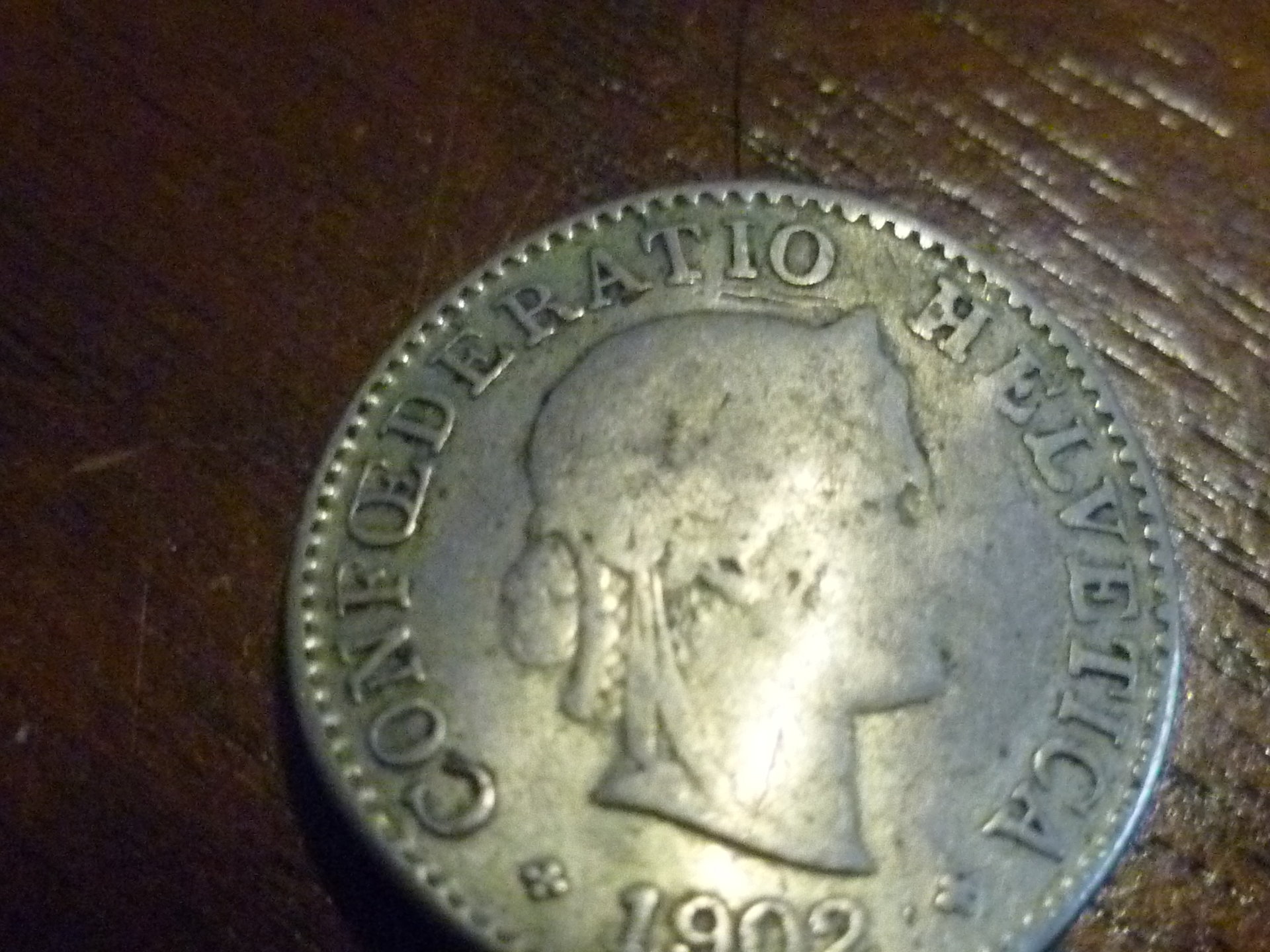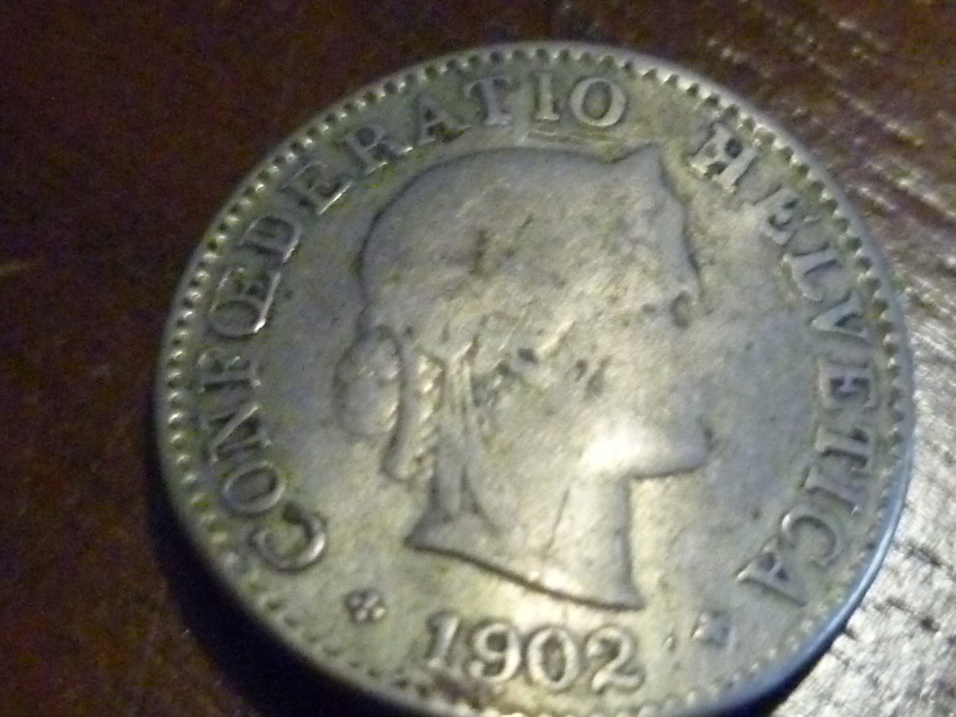 Hello, I don't know about the damage, but that appears to be a 5 Rappen from Switzerland: https://en.numista.com/catalogue/pieces168.html That year is listed as rare, but that damage... John