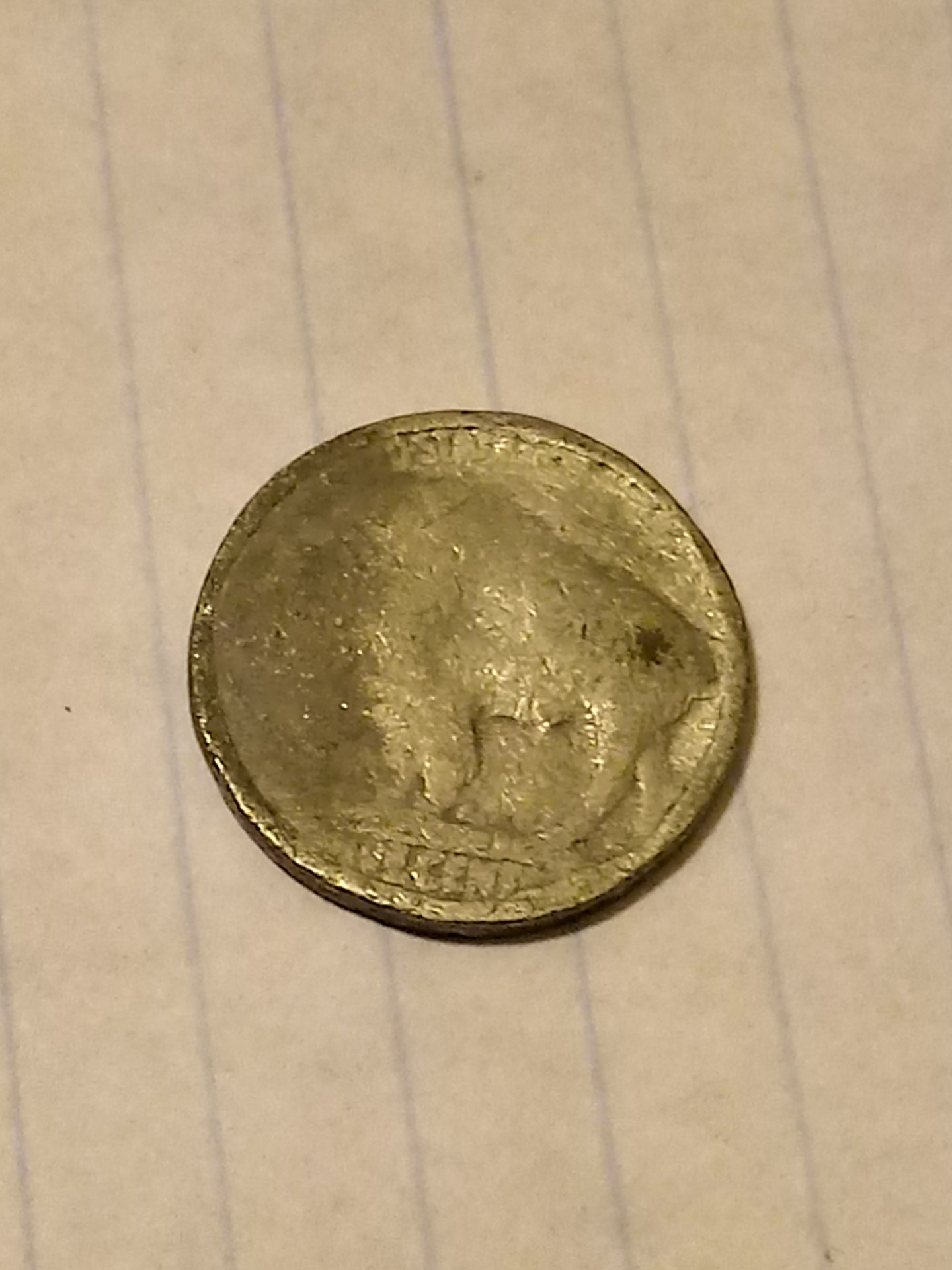 The cent is an historical piece. It was the first year of the new popular Lincoln cent. Shortly after its release the VDB was removed from the reverse of the coin. Cool piece of history..... The buffalo has had its obverse ground down for some reason.