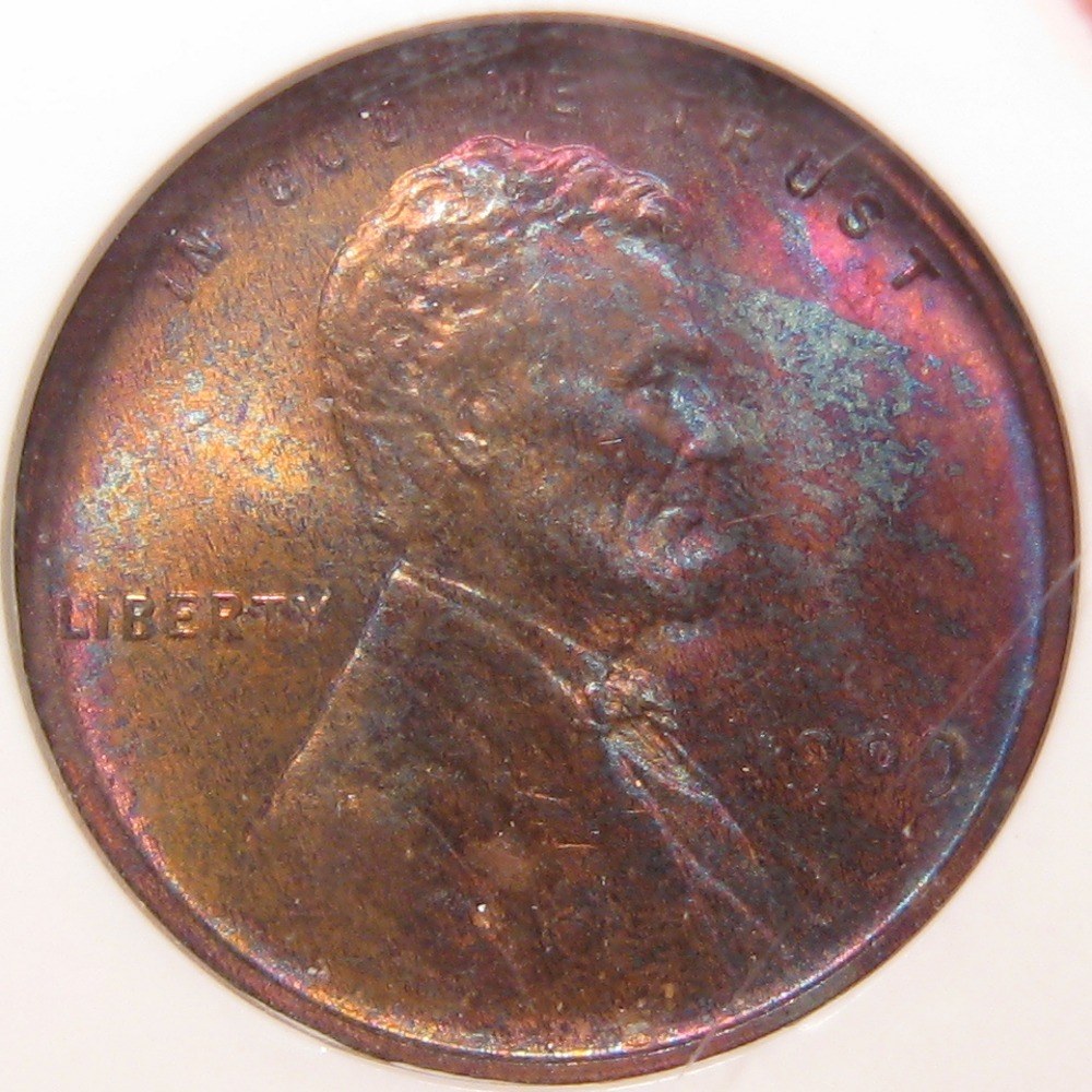 First, my advance apologies for those of you whose browser does not automatically resize the images I post to a manageable width. Stop here. Get FireFox or Chrome and/or complain to the administrators here. I chose and have been focused on the 1909 VDB Cent for the last 6 Months. I started out wanting to create a PCGS Certified Lincoln Grading Set but found out quickly, that wouldn't/didn't work. Too much variance/discrepancy etc. I am now aptly calling this collection a 1909VDB Lincoln Study Set. Background: I have collected (ok saved) all my pocket change for as long as I can remember. I was also handed down a rather large hoard of Lincolns. About a year ago, I found myself with time to go ahead and do something with these coins. I started with Google looking up values, learning key dates, then that took me to eBay to see what stuff was actually selling for, which led to learning grades, which then led to PCGS & NGC - which led to message boards. With of all of that, I decided that I needed to put my hands on some certified coins to use for comparison against what I have. .... So, I went on a PCGS Cent buying binge - that just confused me more. So I decided to pick just one coin and last October, I chose the VDB for a lot of reasons, affordable, plentiful, controversial, 1st Lincoln etc. (Mintage = 28 million) As good luck and coincidence would have it..... I quickly ran into a guy who is probably best known for his 1909 Mint Sets. I found him on eBay selling off his lower VDB grades. If it were not for Illini420, I am not sure where I would be right now with cent collecting. Thanks Mike! I feel comfortable, now that I have collected enough VDB examples... to create this thread as sort of an interactive journal. I now have in the neighborhood of 200+ VDB examples - half certified, half raw. I think/hope it will be helpful to others or maybe only to me (selfish, I know) to post VDB images as examples, to better understand Lincoln Wheat Cent characteristics through discussion and apply them to other coins? It is important to add, that this Study Set was also started at the same time I decided to learn/build a set-up dedicated to the digital imaging of coins. As a sidenote: I feel that this hobby is far far behind what technology can or could do to take the guesswork out of coin collecting. That is another subject that I am passionate about, often very political and opinionated by stereotypes that have been coin collecting since the days of the abacus, that is probably best left alone.... for now... :devil: The point I want to make, is that most of the images I post are shot with the same camera, lens, white balance and light settings. This is important in order for there to be consistency when making comparisons. When I post about digital imaging, I am doing it from my limited but intense experience of only shooting Lincoln Wheat Cents. I have not shot much nickel, silver and no gold. I use a lighting set up different than the pros use/recommend. It produces, what I consider, to give a good balance of detail, contrast, color and reflectivity (luster) - key word = balance. Photography can be viewed as an art, it also can be executed as an exacting science. While one person might want to see a representation of luster another might want to see contrasting details or may feel that monster toning is most important. Subjects that come to mind that I will post examples of looking for feedback, are Machine Doubling, Woodies (alloy impurities or poor mixing), Colors of oxidation and or "toning" and the contaminates that cause such, Doubled Dies. Early State Die (EDS, MDS, LDS) Die cracks, Die Polishing marks, Planchet prep or lack of, TPG grading and differences between the TPG's, the list is endless. Post them if you have them! I might as well start off with the king of the crop. *Not a weak strike, but it seems details like in the beard are missing. *Typical smudge on the reverse at 11 o'clock. I see this consistently on lot of the VDB's. I visualize the smudge could be a result of something happening when the coin is "kicked out" of the press. *I believe this coin would show more of a "wood grain" if allowed to tone. *The R in PLURIBUS was filled with something when struck. *The little white dot on the N in CENT is on the coin, looks like a bit of quality control issue there?