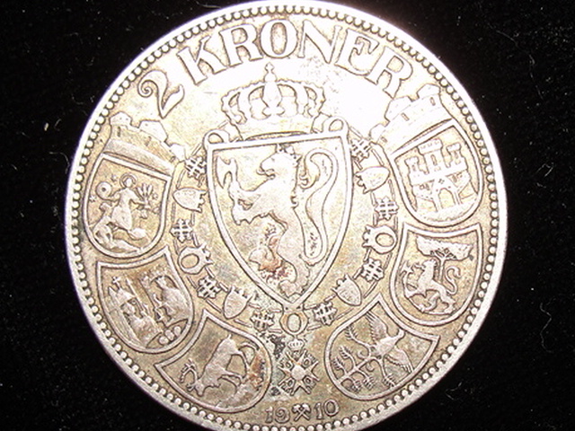 The 1910 Norway 2 Kronor appears to be real. An important distinction given all the counterfeits out there of this type, with multiple years being faked. Would go in F15 slab if I were grading it, assuming the area above the date does not have PVC damage.