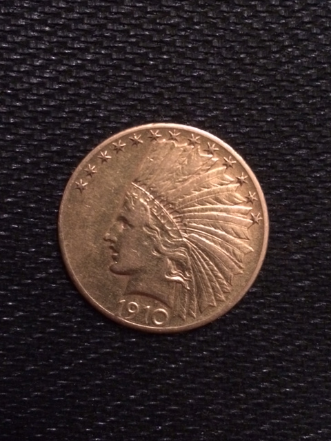 I think you are okay on your cost. Coinflation.com has the circulated $10 Indian at $594.96 based on the spot gold price. So when gold goes back up, so does this. Sorry I missed that it was a 1910-D (Denver) Mintage 2,356,640. Yes, those are better pics.