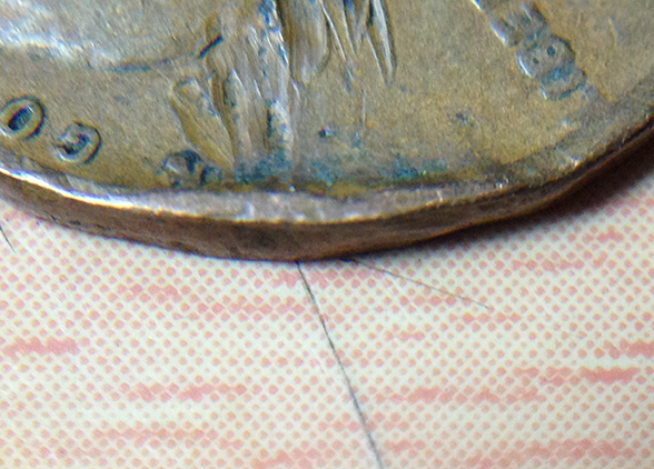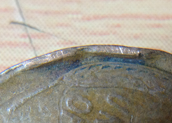 +1 if these cuts were done before strike you wouldnt see any uplifting/displacment of metal next to the cuts and they are shollow cuts you clearly see displacement of metal next to the cutmarks'' in these pictures.