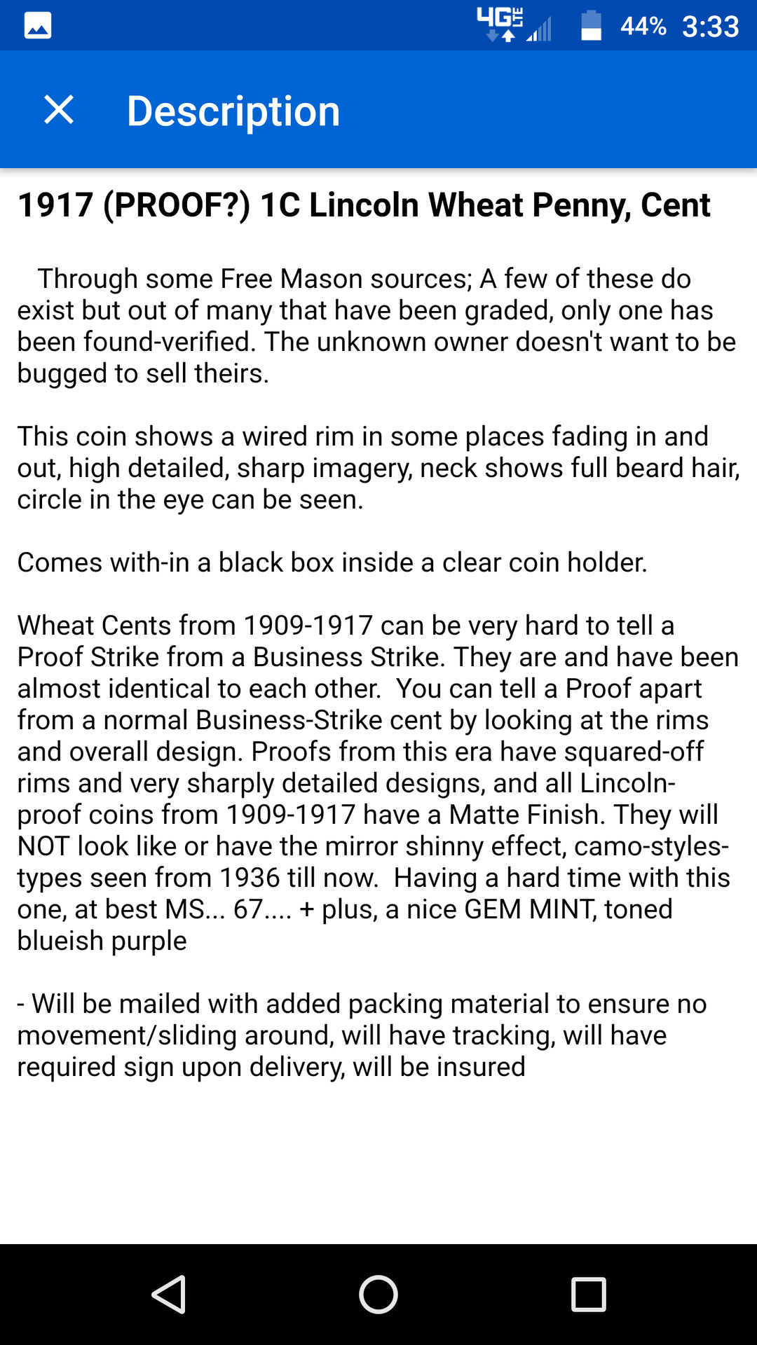So I messaged this seller and the response was insane. something about their family is freemasons and they have unknown knowledge about 1917 proofs. lol wacky eBay sellers