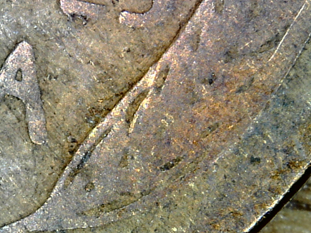Besides still being upside down? I stand by my original post and say that it looks like a woody http://www.error-ref.com/improper-alloy-mix/ I also stand by the reverse probably being struck through grease.