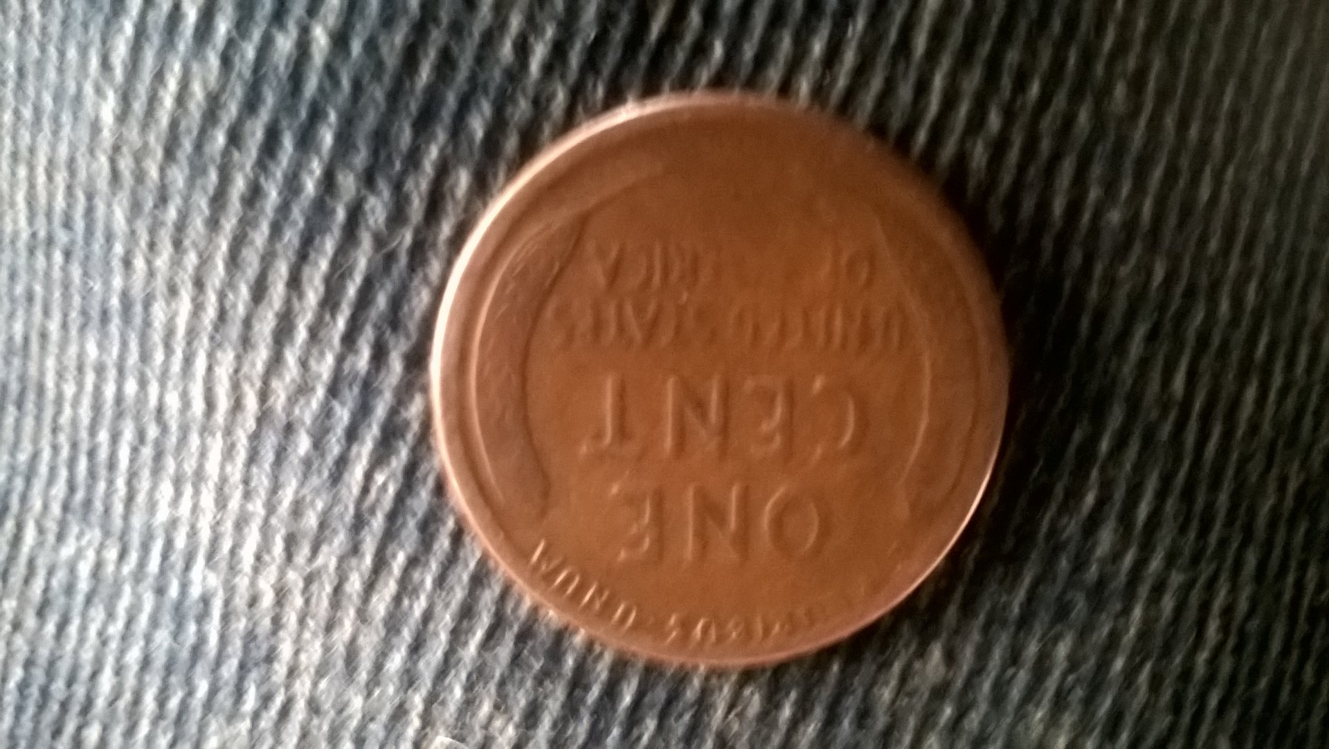 Upside down and sort of out of focus pictures aside, your cent looks to possibly be a "woodie" at least on the obverse. The AM on the reverse may be struck through grease. Hard to tell based on the picture provided though.