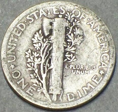 Based on the die cracks, I would say that you have yourself a 1920-D Mercury Dime. The die cracks for this date/mm are well known and the one from the tip of the wing feathers to the rim is photographed in David W. Lange's book A COMPLETE GUIDE TO MERCURY DIMES (pg 71). To confirm this you should look for the "D" mintmark which will be located between the "E" in ONE and the bottom of the branch on the reverse. The good news about your coin is that it did not circulate very long and has VF-XF details remaining. The bad news is that the coin has been harshly cleaned and the 1920-D is a common date for the earlier issues. Given that it is a problem coin, you will probably get $10-$15 if you sold it on E-Bay. BTW, die cracks do not usually increase the value of a coin.