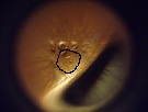 Here's what I see: Hope you don't mind, Mat, but I tinkered with your photos in order to make it more visible. The first one is just blown up with some white noise reduction. The second one is by shifting colors. The third one makes it appear that the smaller the image the more visible it is to the naked eye. Hope that helps!