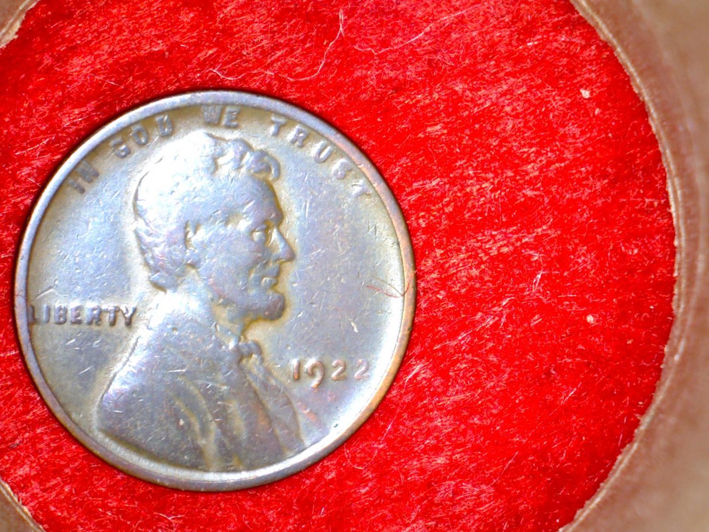 How's about a little help from my friends ? I have this 1922 Lincoln cent that appears to me to be a missing D varity. My eyes are not that great to be sure so I took these pictures. At the least it could be considered as a weak D, but what do you think ? Could this be the missing D with strong reverse (die pair 2) ?. What condition would you grade it. Should I have it slabbed ? Dave