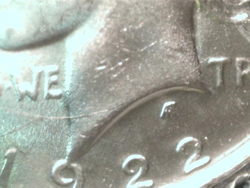 Here's one of them, with the die crack stretching from the left side of the neck to past the first T in TRUST
