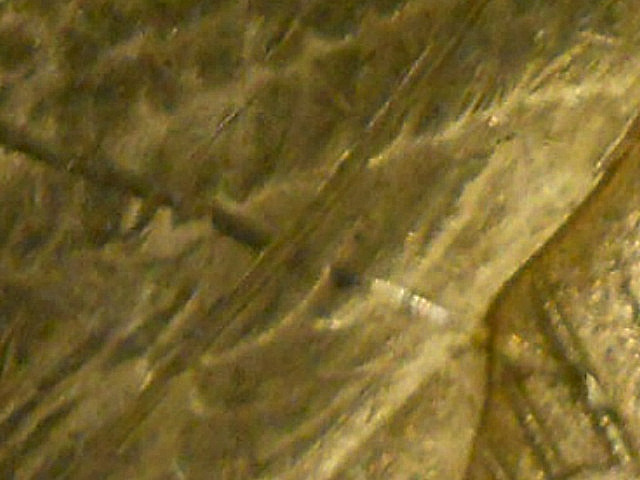 Also, I can't tell if that is a strikethrough or a scratch. If you can see displaced metal raised along the edge, it is probably a scratch. I'm inclined to think that it is a scratch because of the way it crosses the devices.