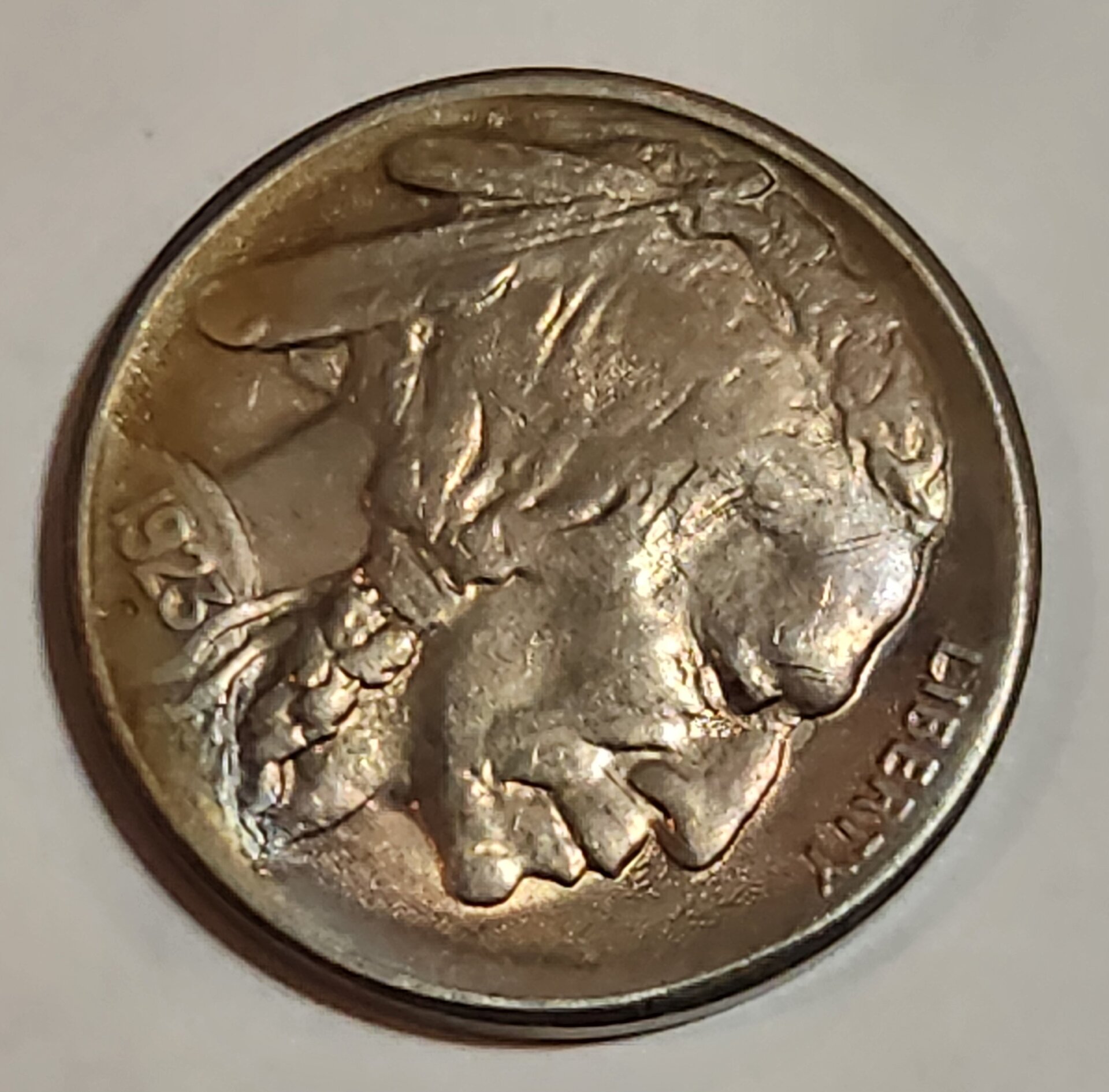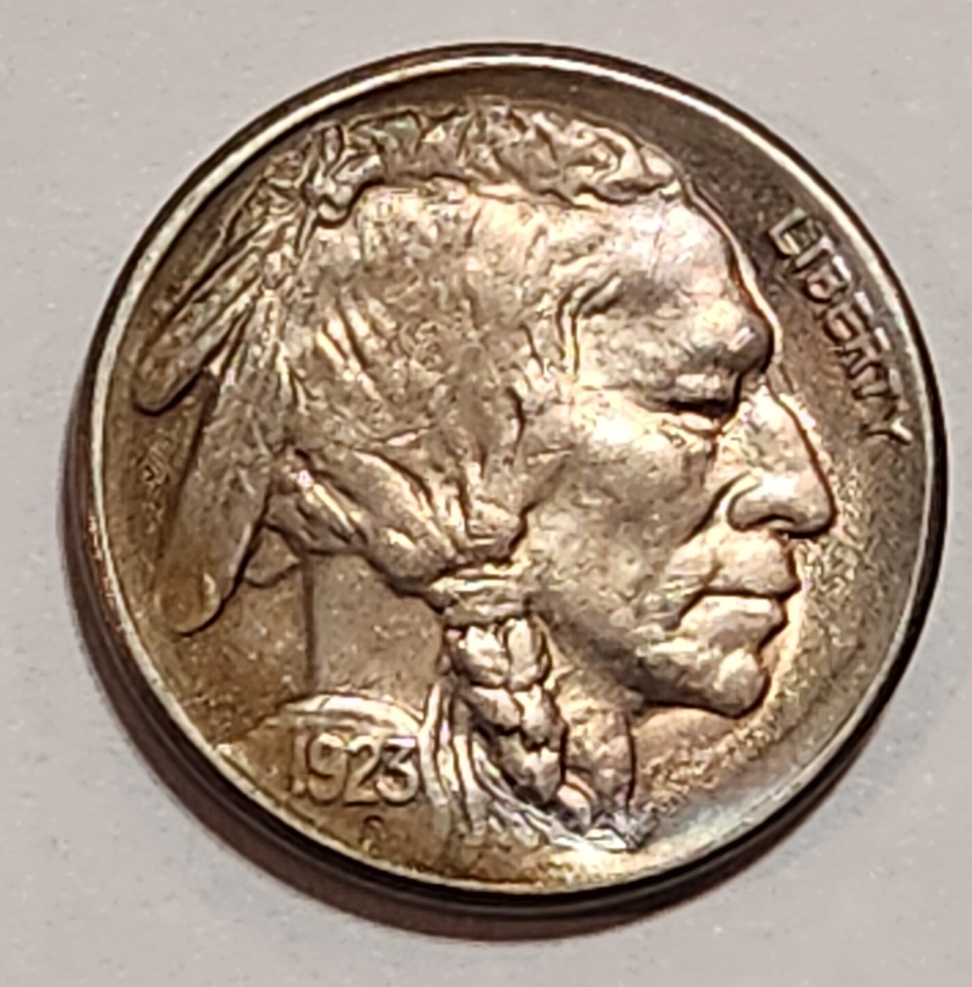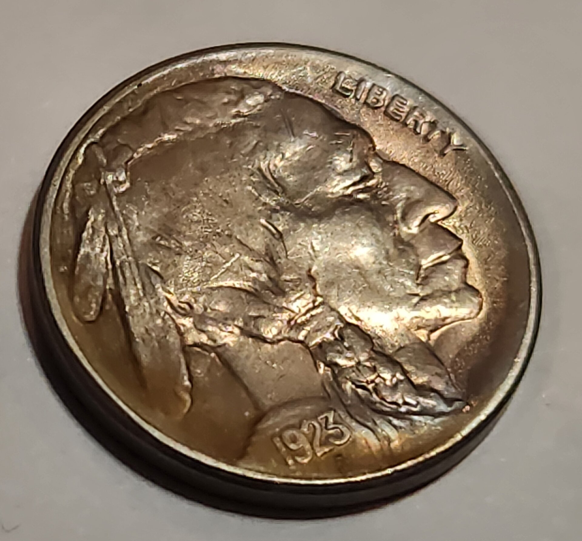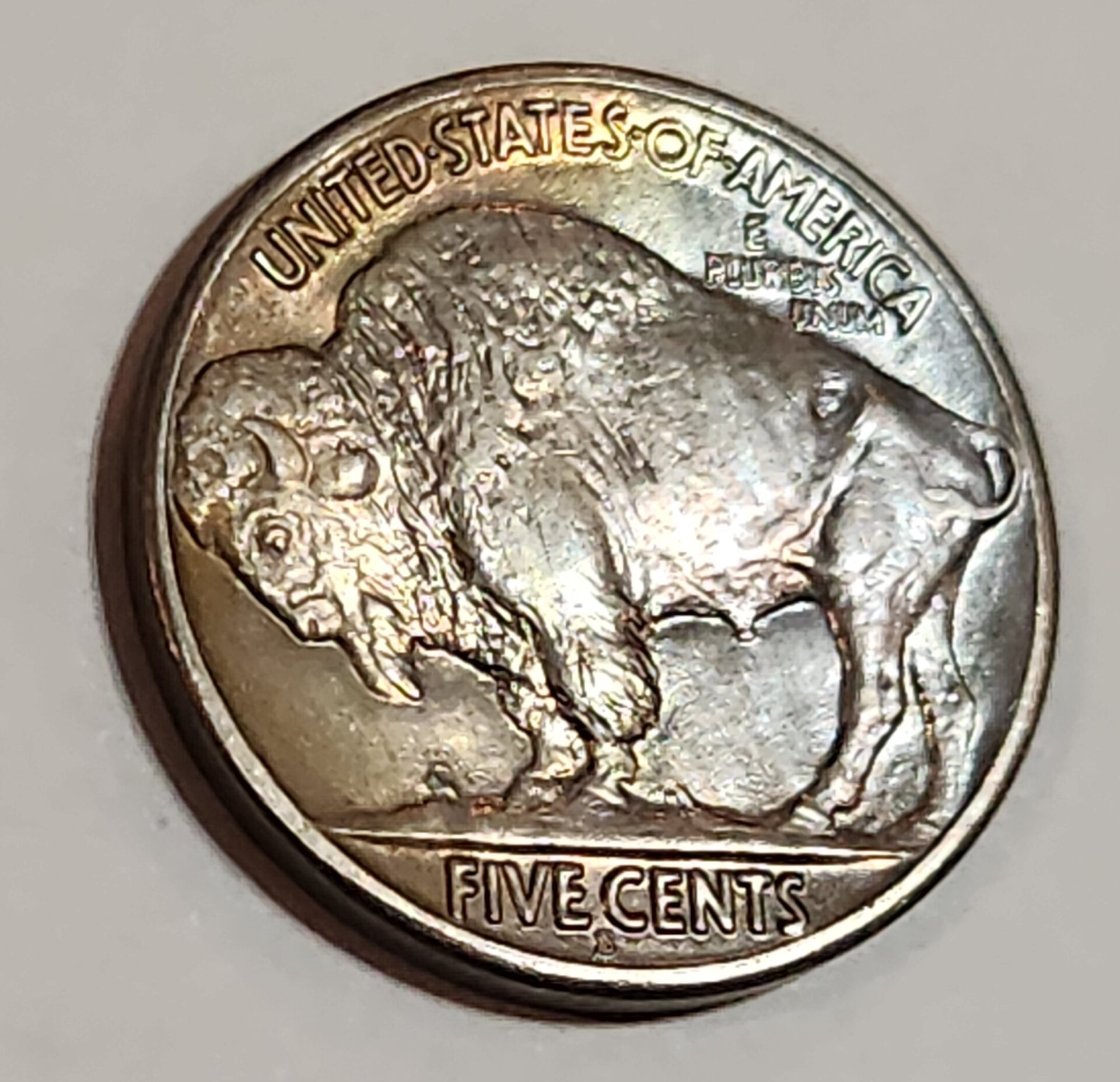 I recently got one of the nicest buffalo nickels I have purchased so far for my collection. I bought it as an XF, but in hand I think it is higher. I am not good at grading these nickels above XF, as the line between AU and MS becomes quite blurry for me. What do you all think? Regardless, this is my favorite series (tied sometimes with trade dollars) so I am thrilled to have it in my book. It has mostly beautiful toning. Something is happening on the obverse that makes it cloudy, which I don't like.