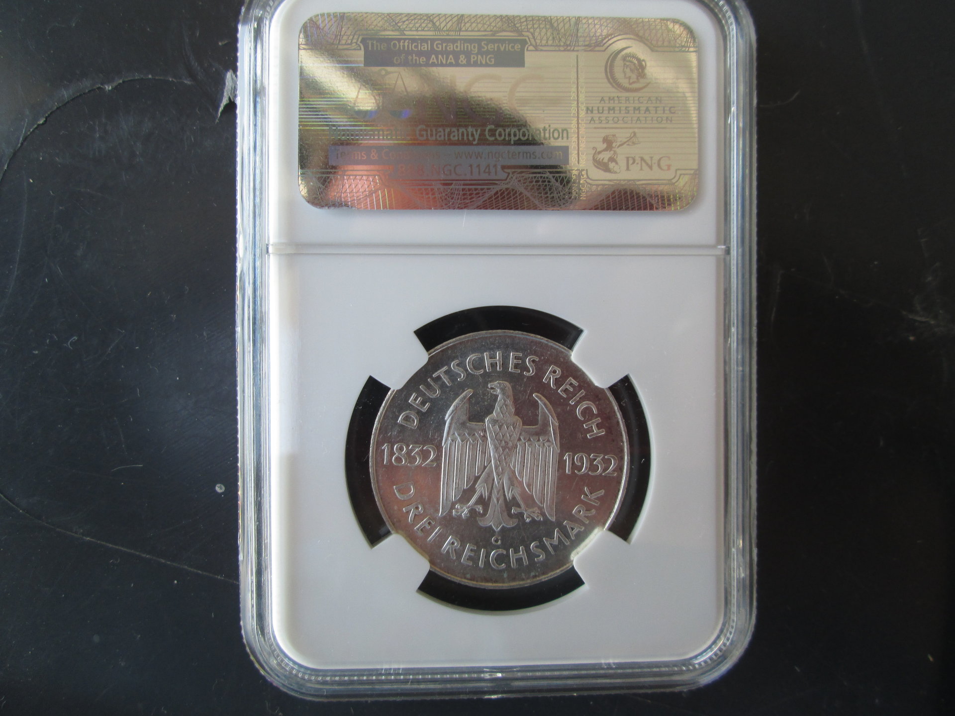 I have listed these before but I am reposting with lowered prices. I do accept paypal. 1. 1925 Norse American Medal graded PCGS MS 64. Thick Planchet. SOLD shipped. Pics are here: https://www.cointalk.com/threads/wts-norse-medal-thick-pcgs-ms-64.255341/ 2. 1871 Japan 5 Sen 53 Rays Variety Graded MS 62 by NGC SOLD shipped. 3. 1780 Maria Theresa Thalers UNC $19 each...groups of 5 get free shipping. 4. 1932-G Weimar Germany 3 Mark Goethe Commemorative. NGC MS 62. This is the rarest and most valuable of the Goethe mintmarks. $140 shipped. 5. 1862 New Brunswick 5 Cents NGC AU 53 with nice toning. SOLD shipped. Slab has slightly convex flats like it was left in a warm place at some point in its life. The integrity of the slab is unaffected and coin is guaranteed 100% genuine.