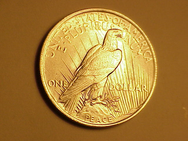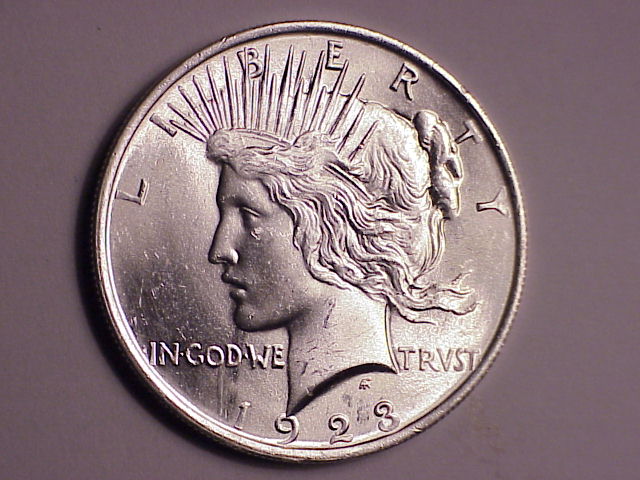 Fer the VAM collectors here is a legitemate VAM 1-B (OBV, see die cuds over IN), 1925 Peace in XFish condition. It's listed as an R-6 and I purchased this in a lot of 10 XF-AU Peace and Morgans a few months ago. Also, here is a 1923 VAM 1-G (OBV, see die cud and polished area under the OD) which was in the same lot. ;)
