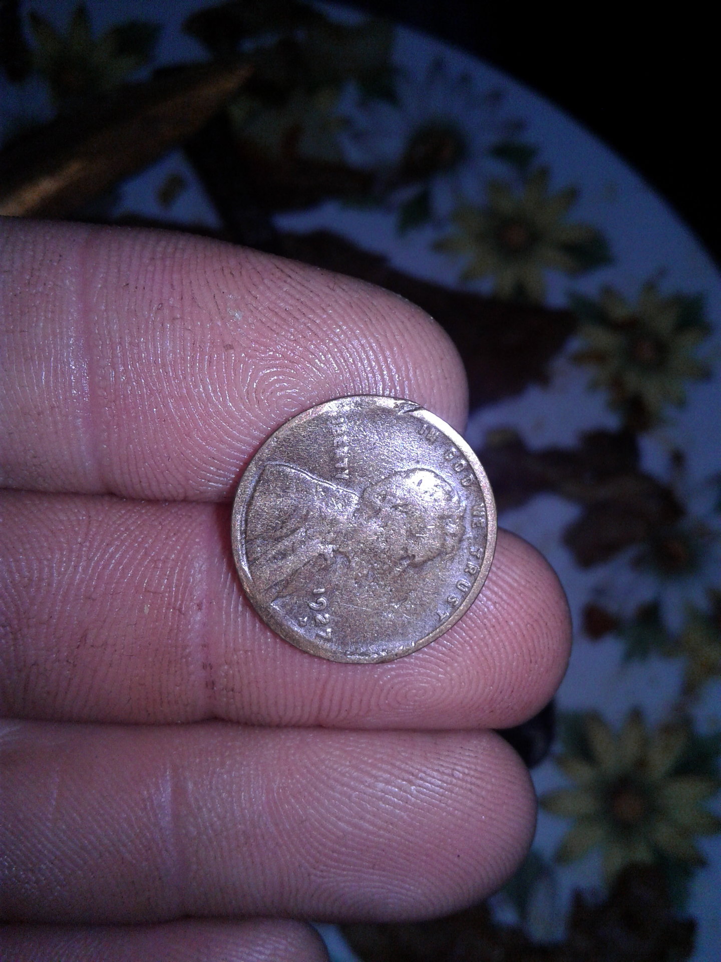 It looks like a coin with 92 years of circulation wear and tear. From what I understand, typical "vise jobs" or "squeeze jobs" occur when someone clamps one coin down into another causing an incuse reverse image so you would see it backwards basically. Its pretty sad because if you look at sold listings on eBay you can see people that have been tricked into spending good money on these damaged coins that are being marketed as ultra rare mint errors. The mark below "Cent" on the reverse is interesting because it does resemble that of a possible strike through, maybe struck through rim burr; there is no apparent metal displacement. But the thing is, even if it was PMD (post mint damage), after that many years of circulation the displaced metal could easily be worn down anyways. There really is no way to tell for sure in my opinion. I'm definitely not an expert though and if anything I've stated is wrong I'm sure the pro's will chime in and correct me.