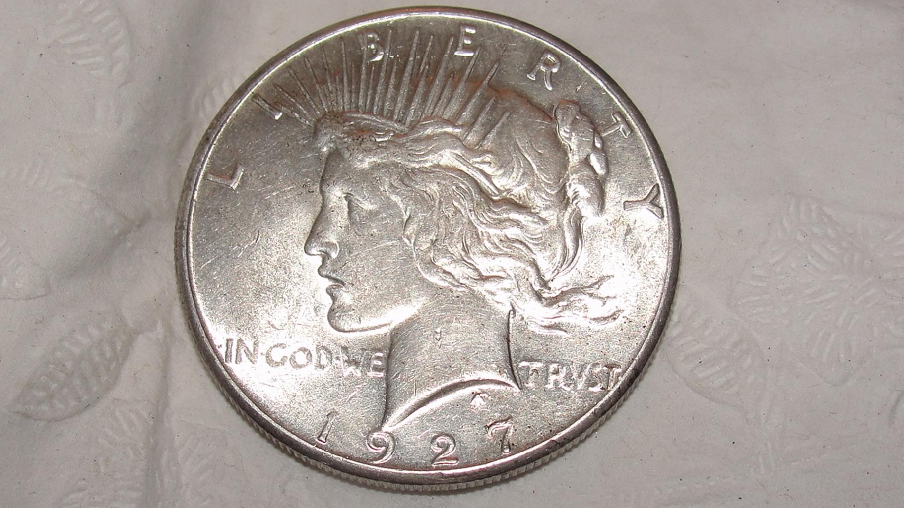 Peace dollars imo are one of the hardest coins to grade when not in hand. That being said, I'll take a stab at it. AU-55. I see some wear on the high points. Lots of contact marks on the face and neck. Coin still appears to have decent luster though.