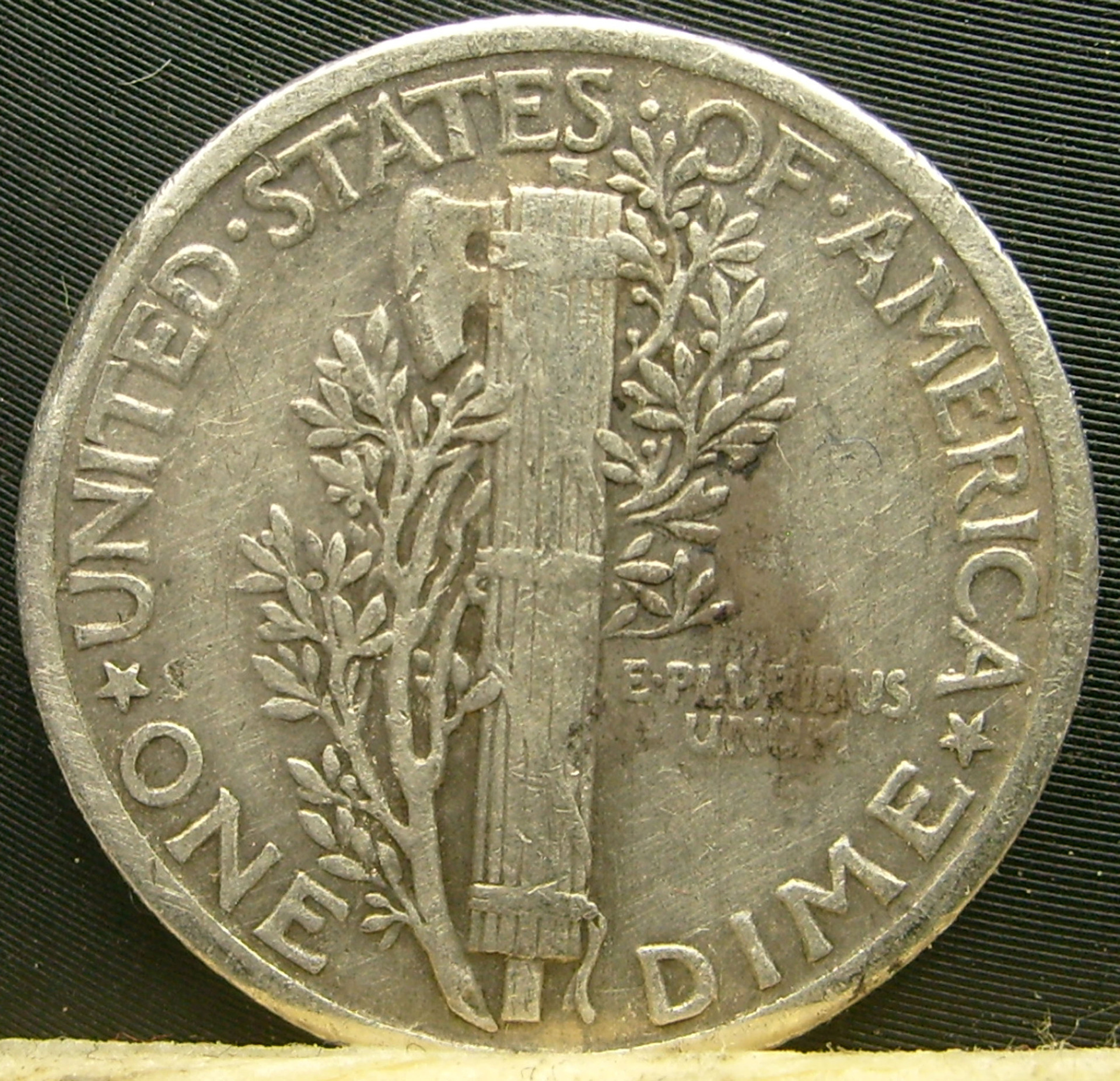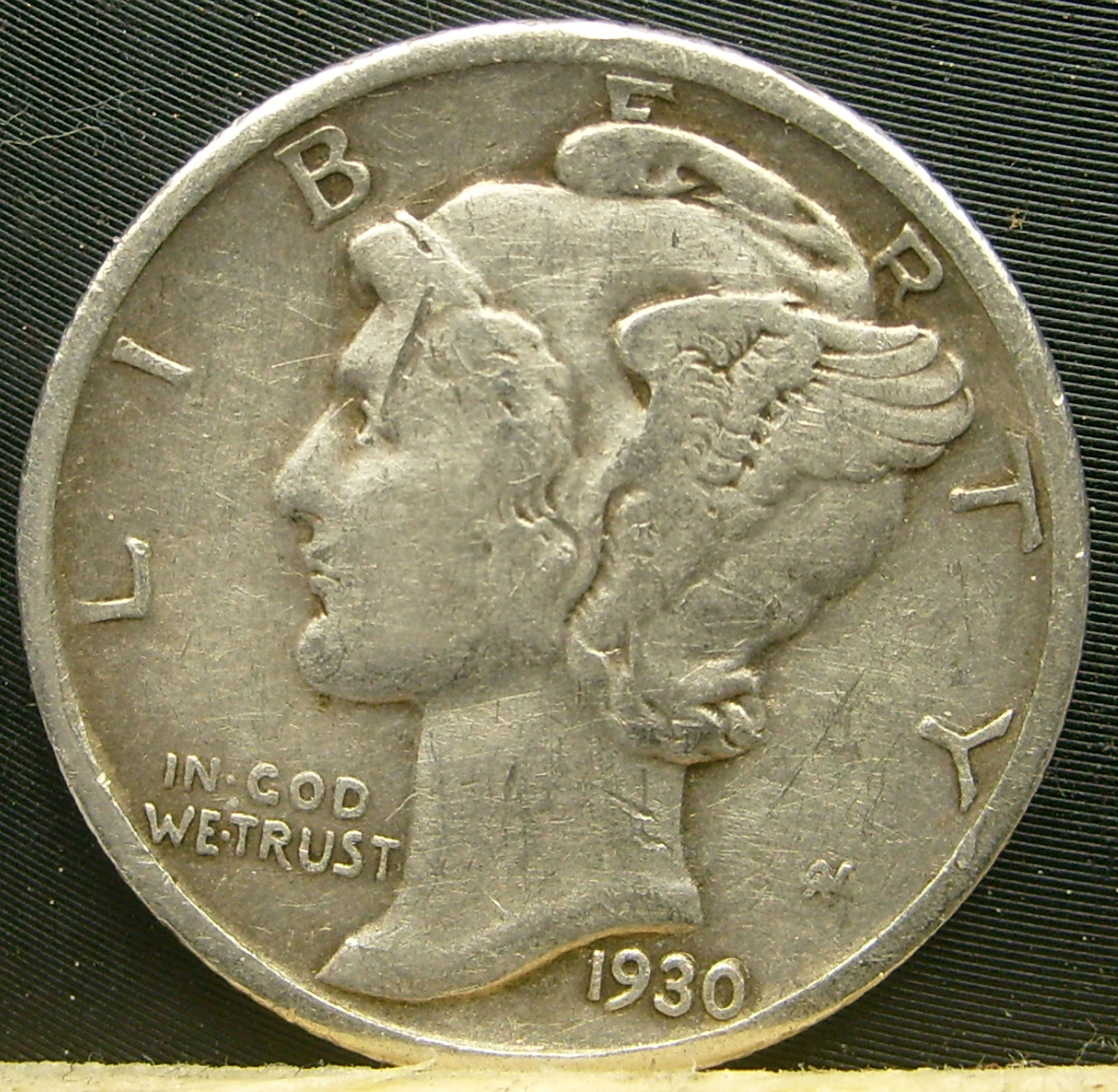 The mintmarks for mercury dimes is on the reverse side of the coin and not on the obverse side. If we look long enough we can staret to imagine all kinds of things.