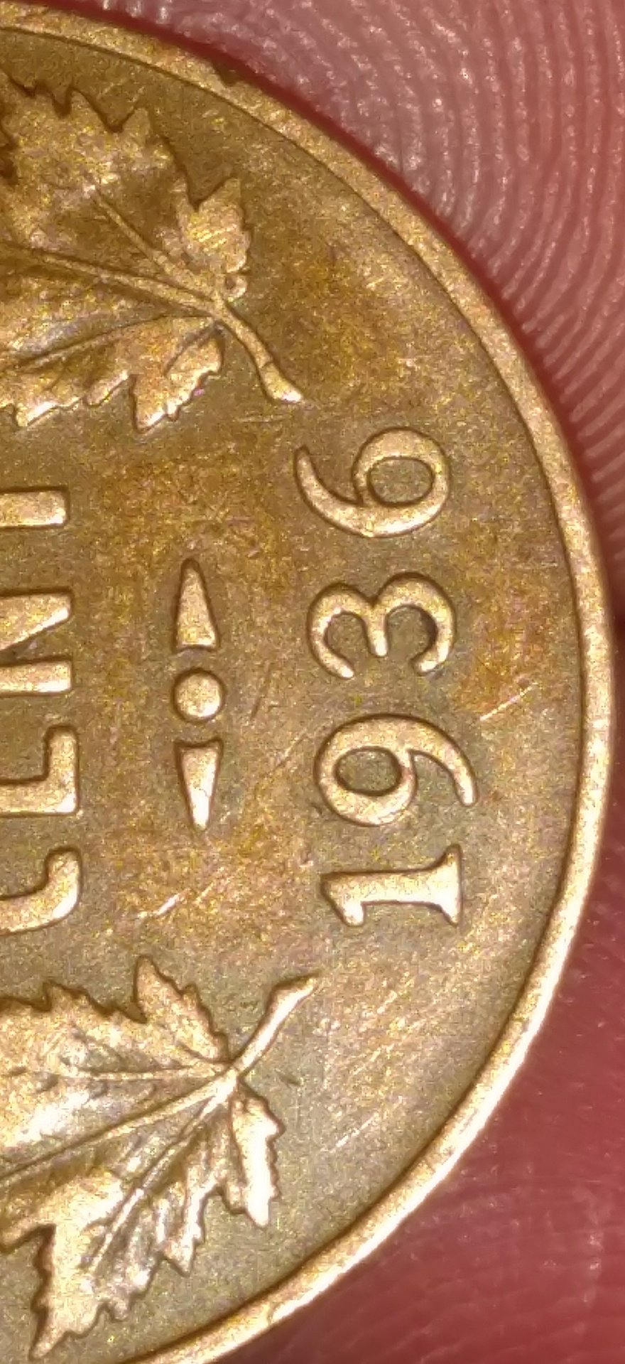 I found this and it looks as though it once had the dot but was scraped and ripped it out. I take it no value now to it but just help identifying it one was.