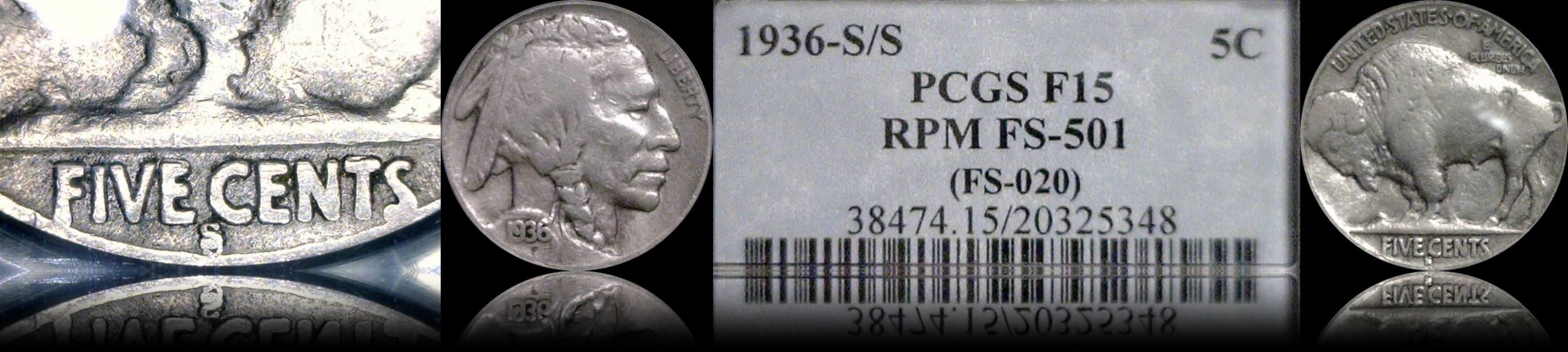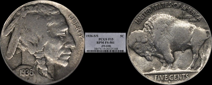 1936S/S FS-501(FS-020) PCGS 15 Repunched Mintmark PCGS has certified two coins at this level as FS-501 with 26 finer