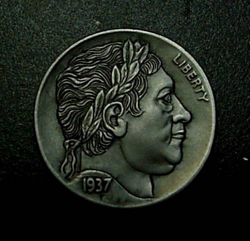 This is one I just finished, the subject being King George Third..The host coin was a 1937 full horn buffalo nickel..I hung a photo of King George on my wall and carved what I saw with hand push gravers.