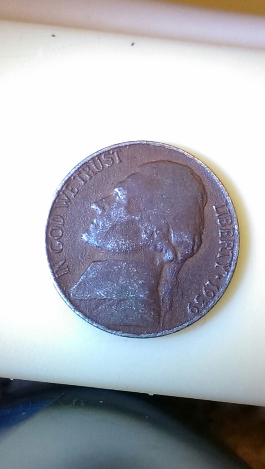 1939 is a metal detector find (as said by frank), someone cleaned the dirt off of it so it was left with that red color (Almost all dug nickels get that red color). Second one just looks to have picked up that dirt and grime and such from circulation. Unless the first one was '39d, which it's not, there is not much value to be reduced