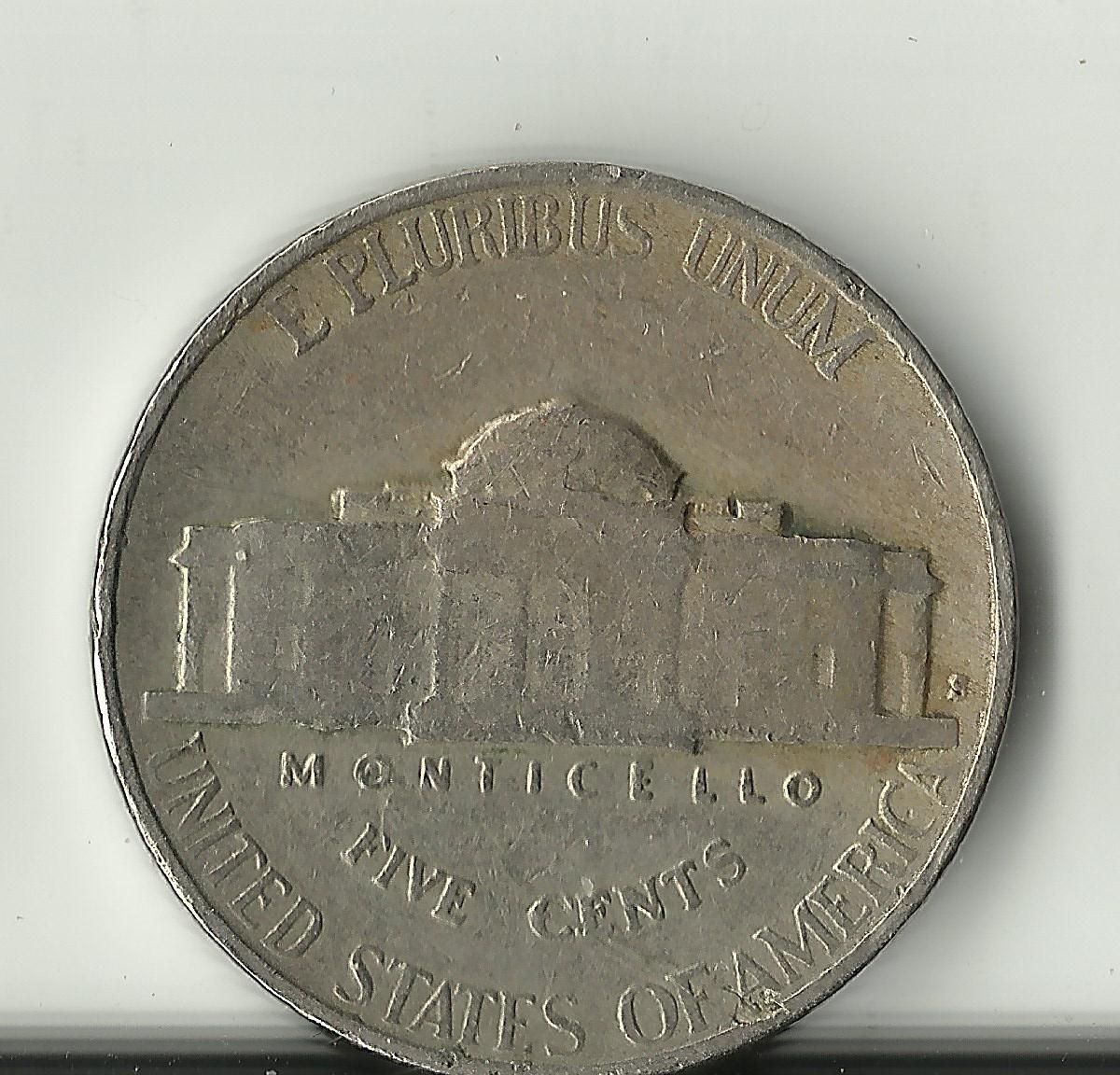 here is a 1940s jefferson nickel on reverse side it has indenttion don at bottom i would to have a close pic but this is the best i can come up with my question is what kind of erroris it please help thanks