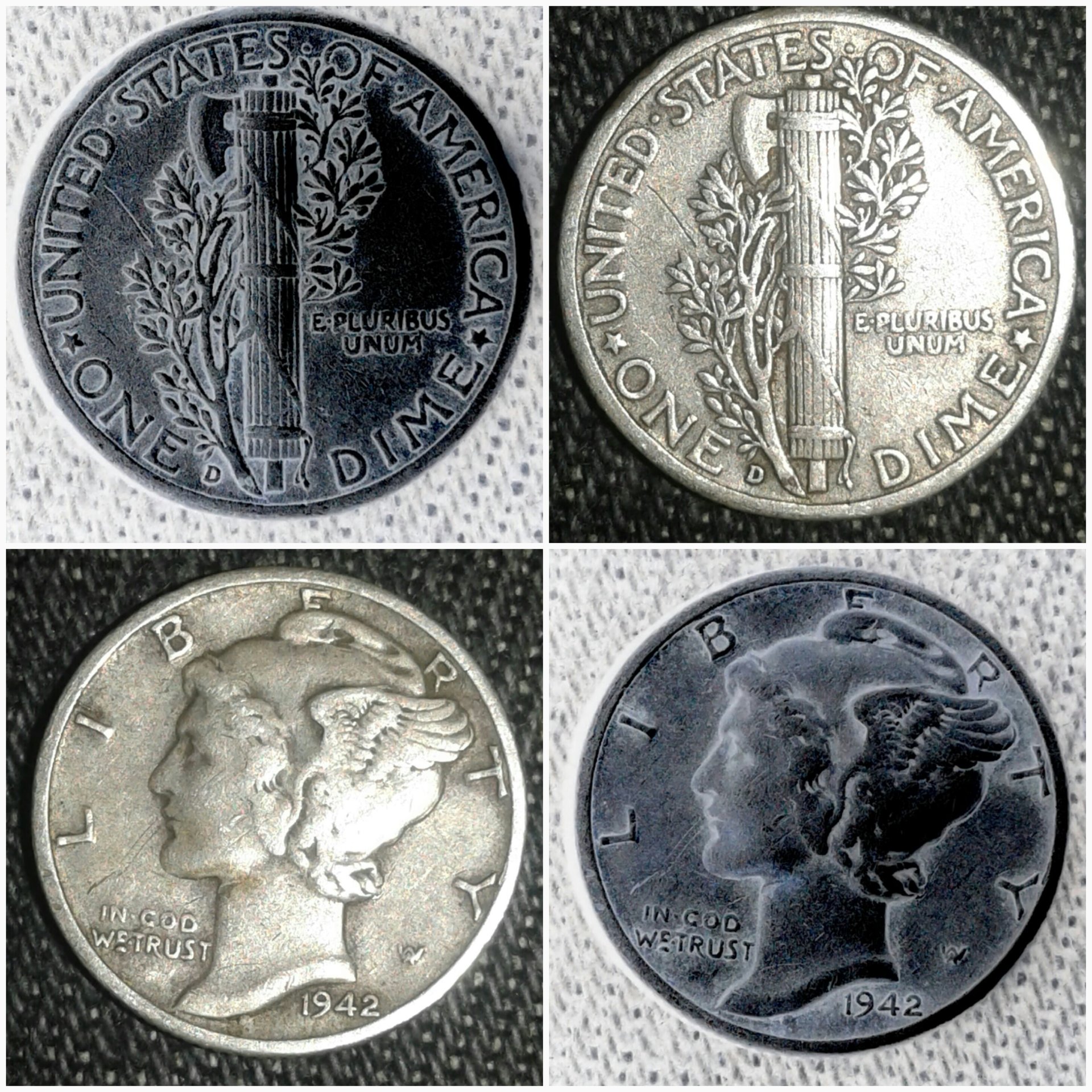 Have several 40's decade dimes, and saw mention of the 42/41. This is a D, and where I can't say I can see remnants of the one, I can see the 4 over 4. Opinions, other than maybe get my eyes checked?