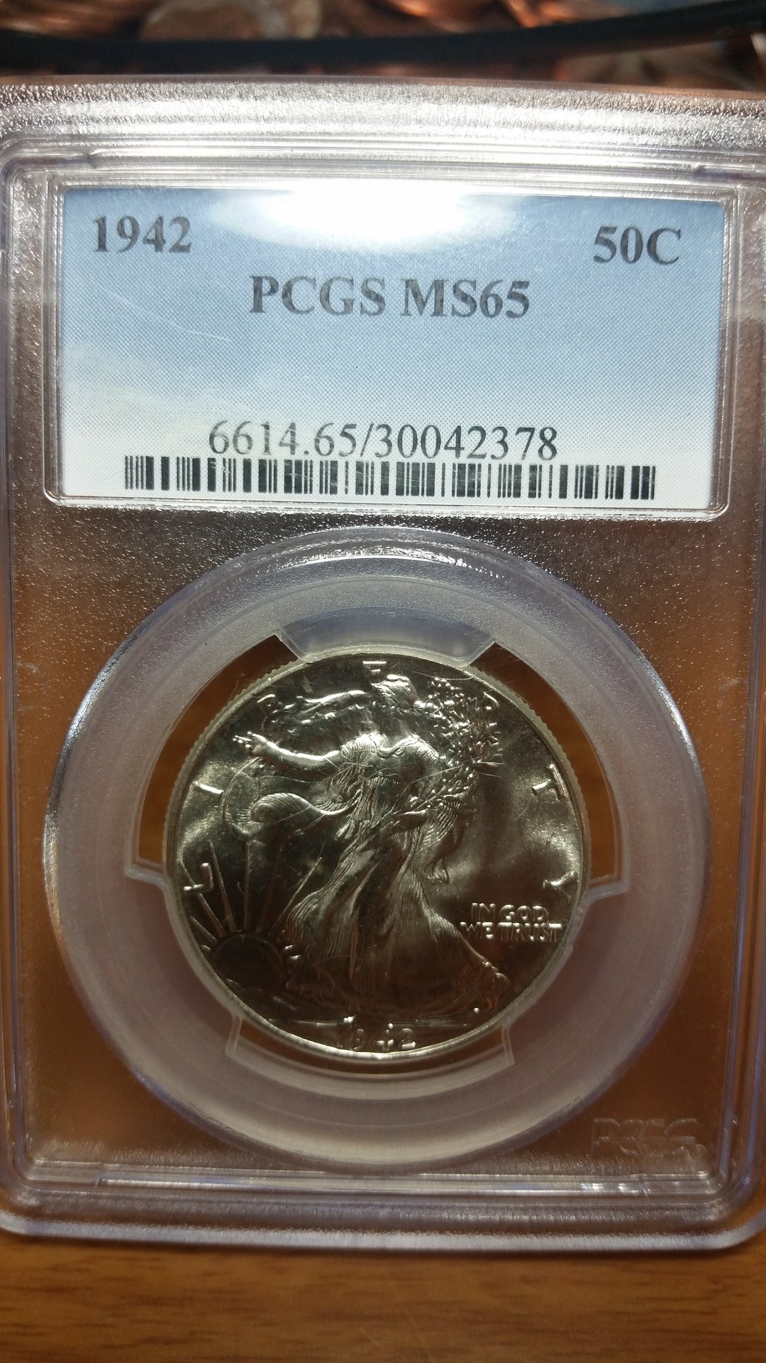 So I'm going through most of my coins tonight and I pull this one out and start looking at it and looking online for varieties and then all of a sudden I notice that my slabbed/graded coin is a variety coin! Went online to see if it makes it much more valuable (I'm thinking this changes everything $$$), looks like nobody cares according to ebay sales. I bought it already slabbed from my local coin shop I always go to. The guy told me he didn't care about varieties and errors and what not, back when I first started. Man....I need to go cherrypick this shop lol. http://www.ngccoin.com/coin-varieti...dollar-die-varieties/1942-ddo-50c-fs-101-5386