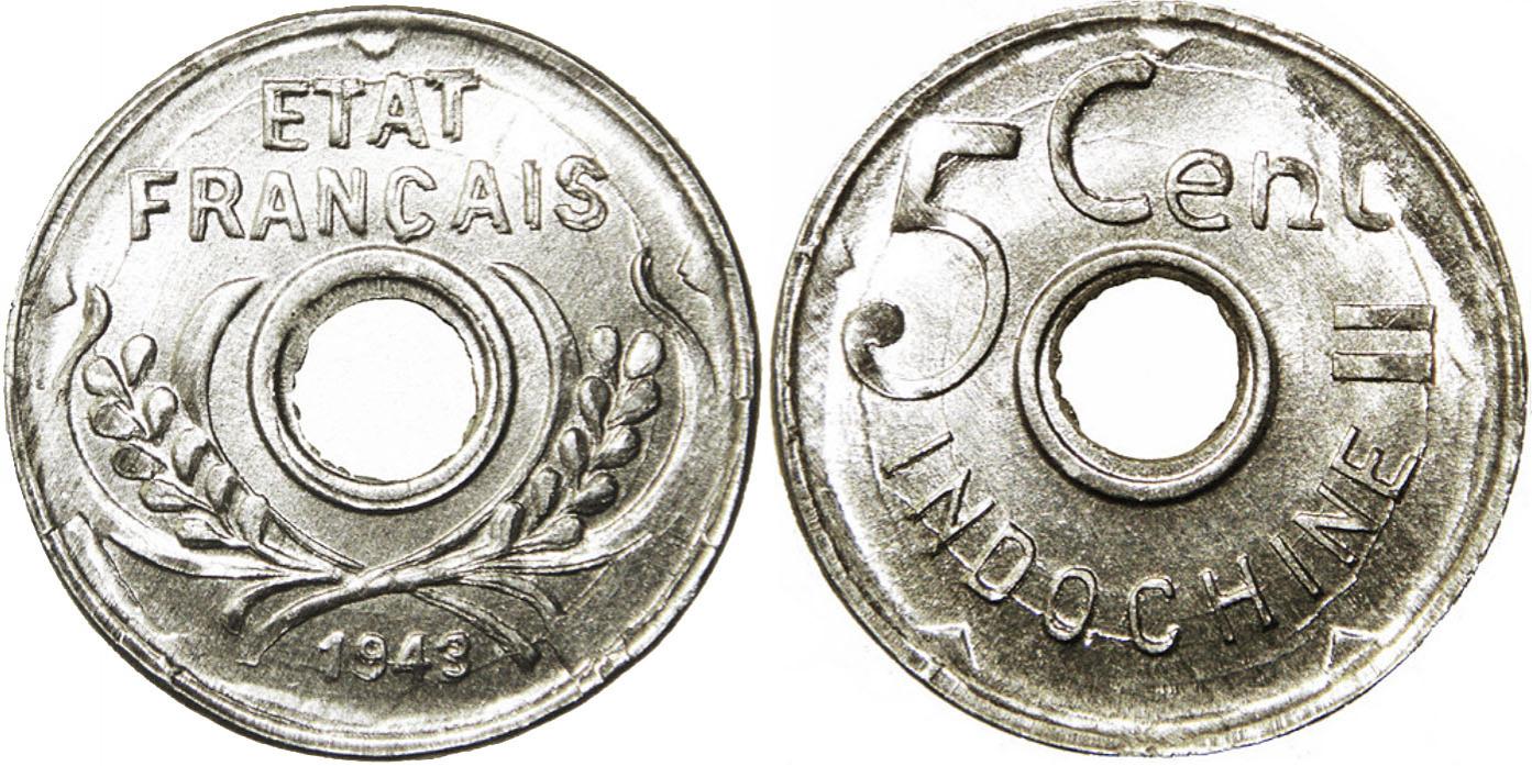 This is a 1943 5 Cents from Indochina. I found this while sorting through a stash of over 700 UNC 1943 5 cent pieces (I have a large collection of Vietnamese and Indochina coins and notes) and it's the only one I've ever noticed. I have no experience with error coins and was wondering what people here would make of it? Is this a 'doubled die'? A double strike? Thanks for you're input