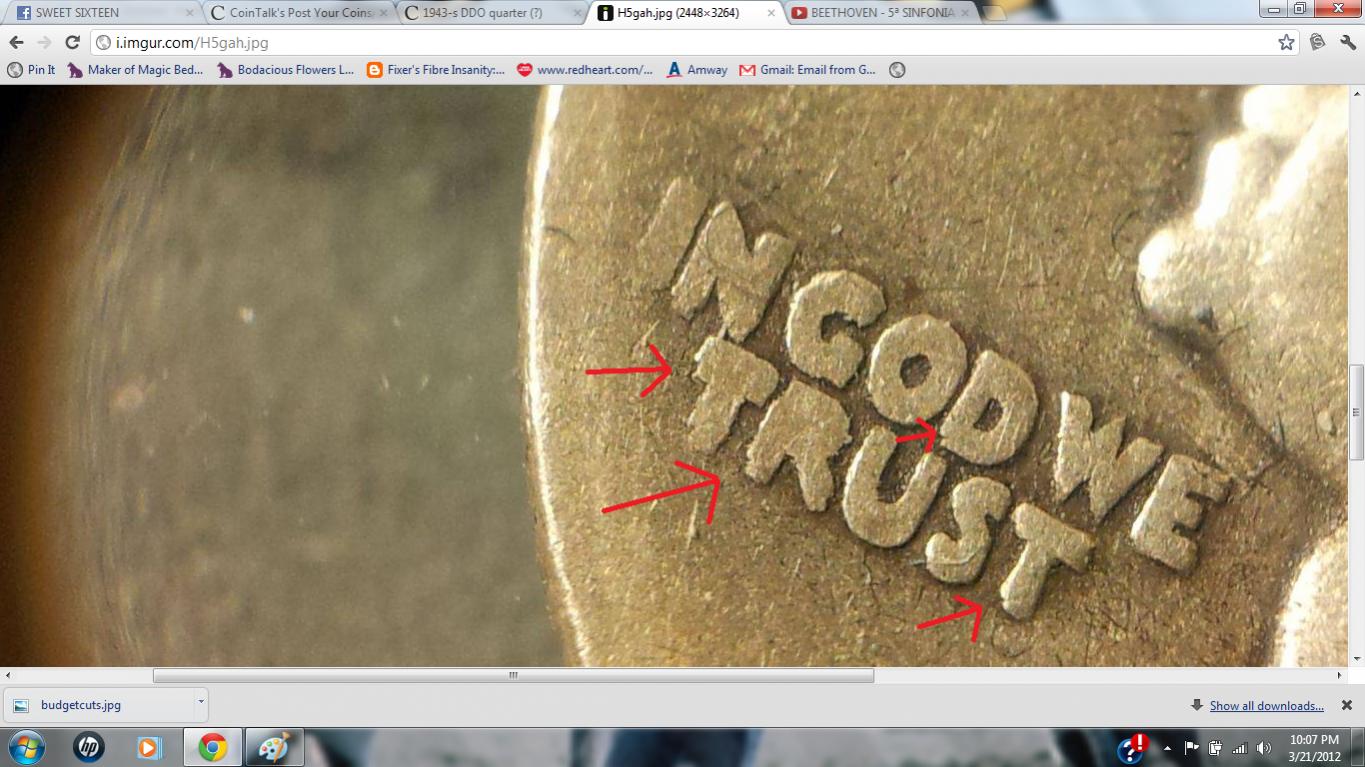 I bought some 90% coins off the bay a month or two ago. I'm pretty sure it is, but I wanted to ask your opinions! I know it's pretty worn, but I was also wondering, if it is actually a DDO, what it might be worth. I mainly see it in 'TRUST' and some in the date, specifically the top rigth corner of the 1.