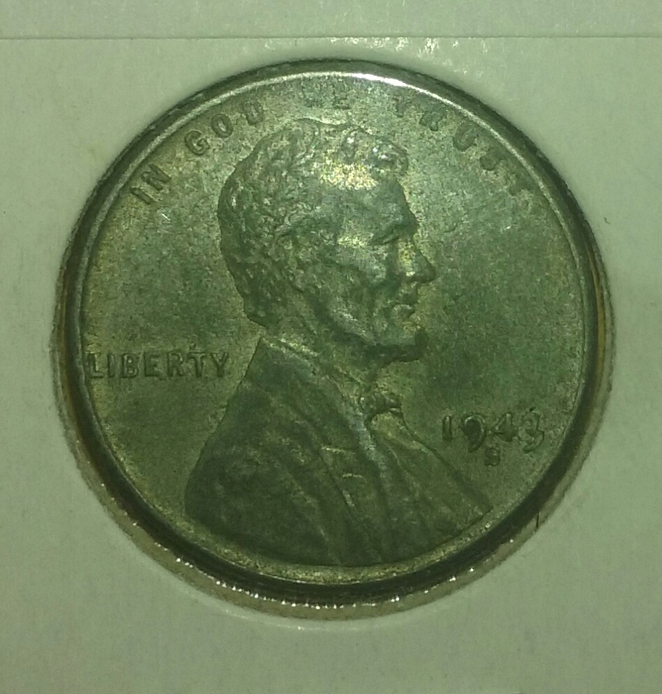 I have a similar looking coin that looks just like yours, color and all, except that it's a 1944 but it's not steel. It doesn't look like copper either, could it be all zinc?