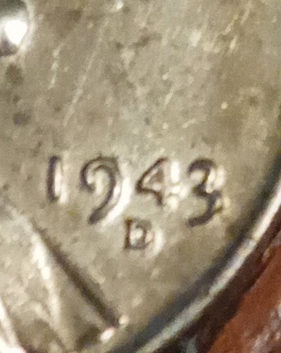1943 Steel Lincoln Wheat Cent with/ Doubling on "D" mint mark