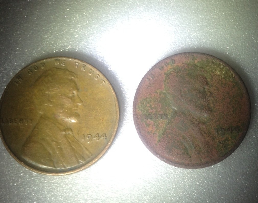 Ok here is what I know so far about this coin I dug this up metal detecting last weekend . It is a 1944 penny it does not have a mint mark of D or S. I only washed the dirt from the coin no other cleaning. The Penny is an odd color kinda pink looking. I weighed it and it weighs 2.8 grams. It does not stick to a magnet. It is noticeably thinner than other bronze 1944 cents. I weighed another 1944 cent I had , it weighed 3.11 grams. All the research I have done so far makes me think I might have lucked up and dug a steel 1944 EXCEPT for the fact that it does not stick to a magnet which makes me wonder if this is a 1944 struck on a foreign planchet. What do y'all think? The cent in question is on the right the penny on left is a regular 1944 cent for comparison. I am interested to see what your ideas are !