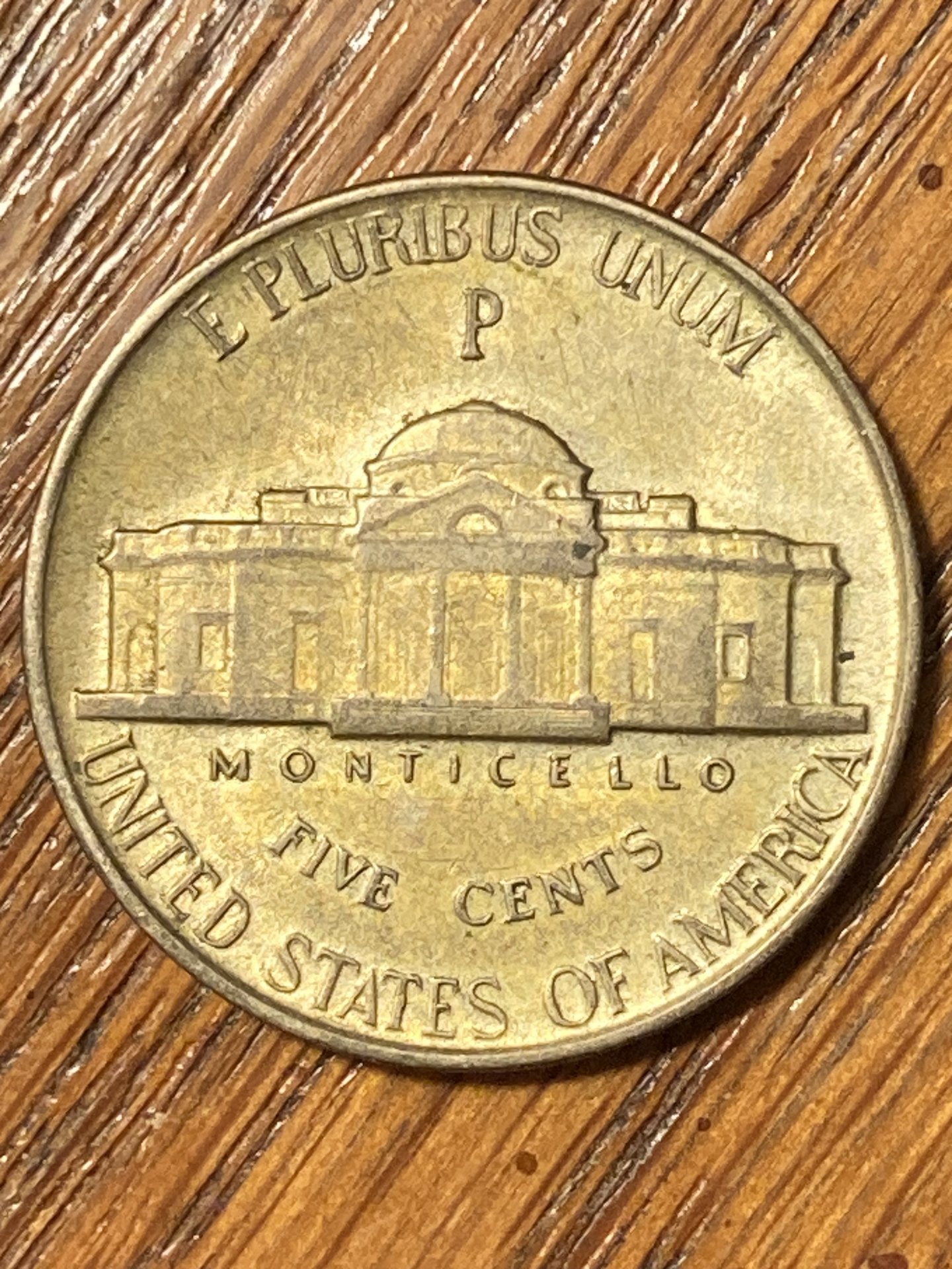 The gold tint is from the odd mix in the war nickels. I have a couple from CRH, certainly not the gem you have. Maybe it’s the manganese