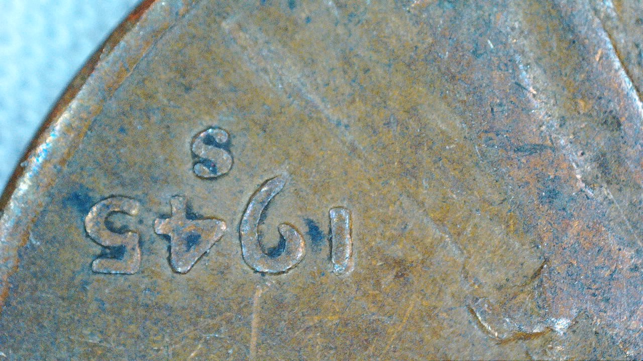 I have this 1945 s penny and I am trying to understand Serif, is it upside down?