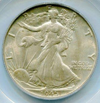 I just got my Cherrypickers guide yesterday and was looking through the coins that were certified and I found a 1945 Walking Liberty graded by PCGS that is missing the designers initials. When a coin is graded they don't automatically check the variety or do you have to pay extra for that. Could someone check the photo to see if I am seeing it correctly. Thanks, Sandy