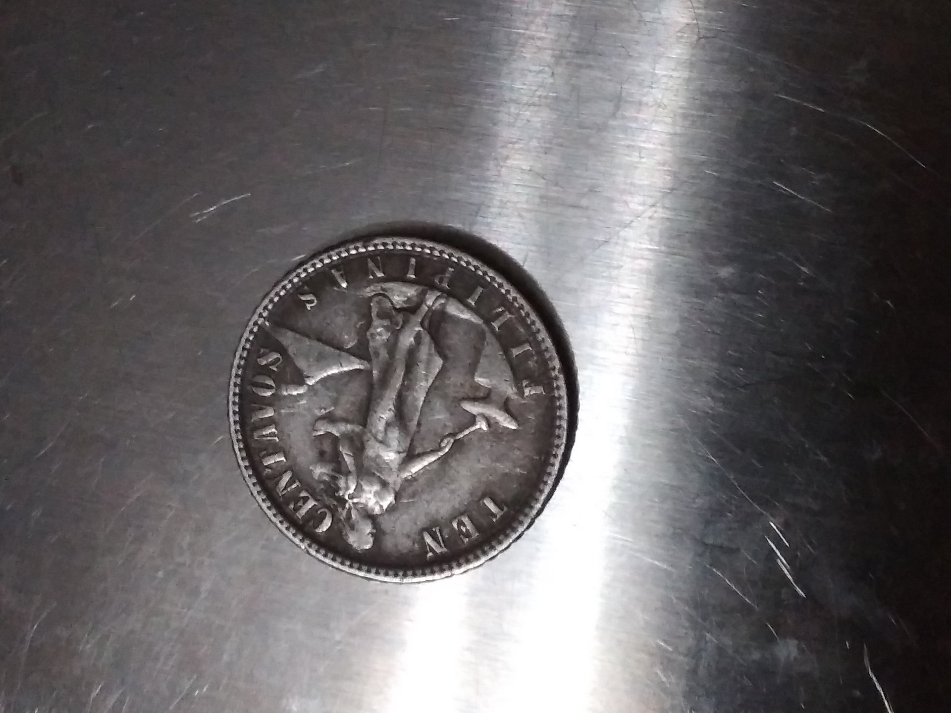 I've had this cool 1945D phillipinas TEN CENTAVOS coin in my lil collection for bout two years or so. I'm just now or recently getting schooled on error and variety. Coin talk has got me hooked , thanks guys. So I can make out what seems to be lettering or maybe a different design behind the excisting lettering. Or am I looking too hard?