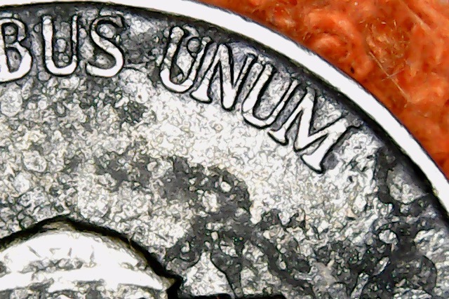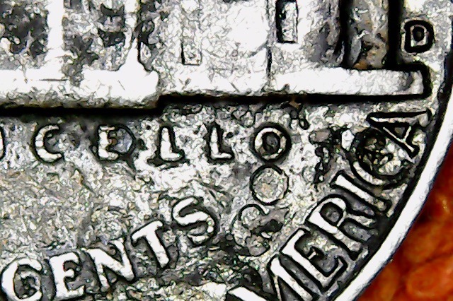 Seen on obverse doubling on liberty. On reverse doubling seen on mansion 'monticello' and 'UNITED STATES OF AMERICA'.