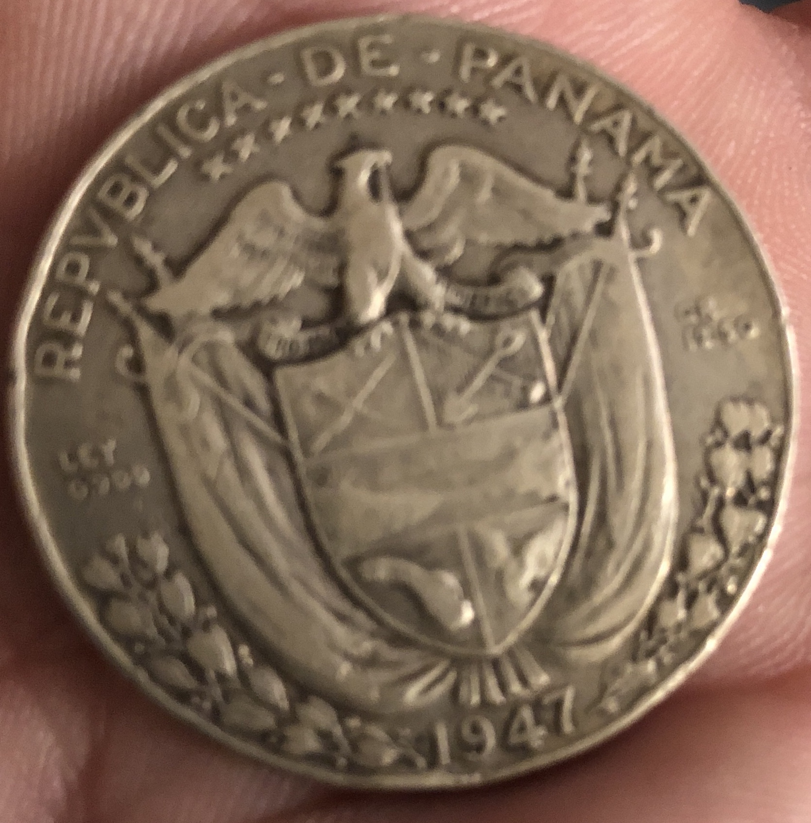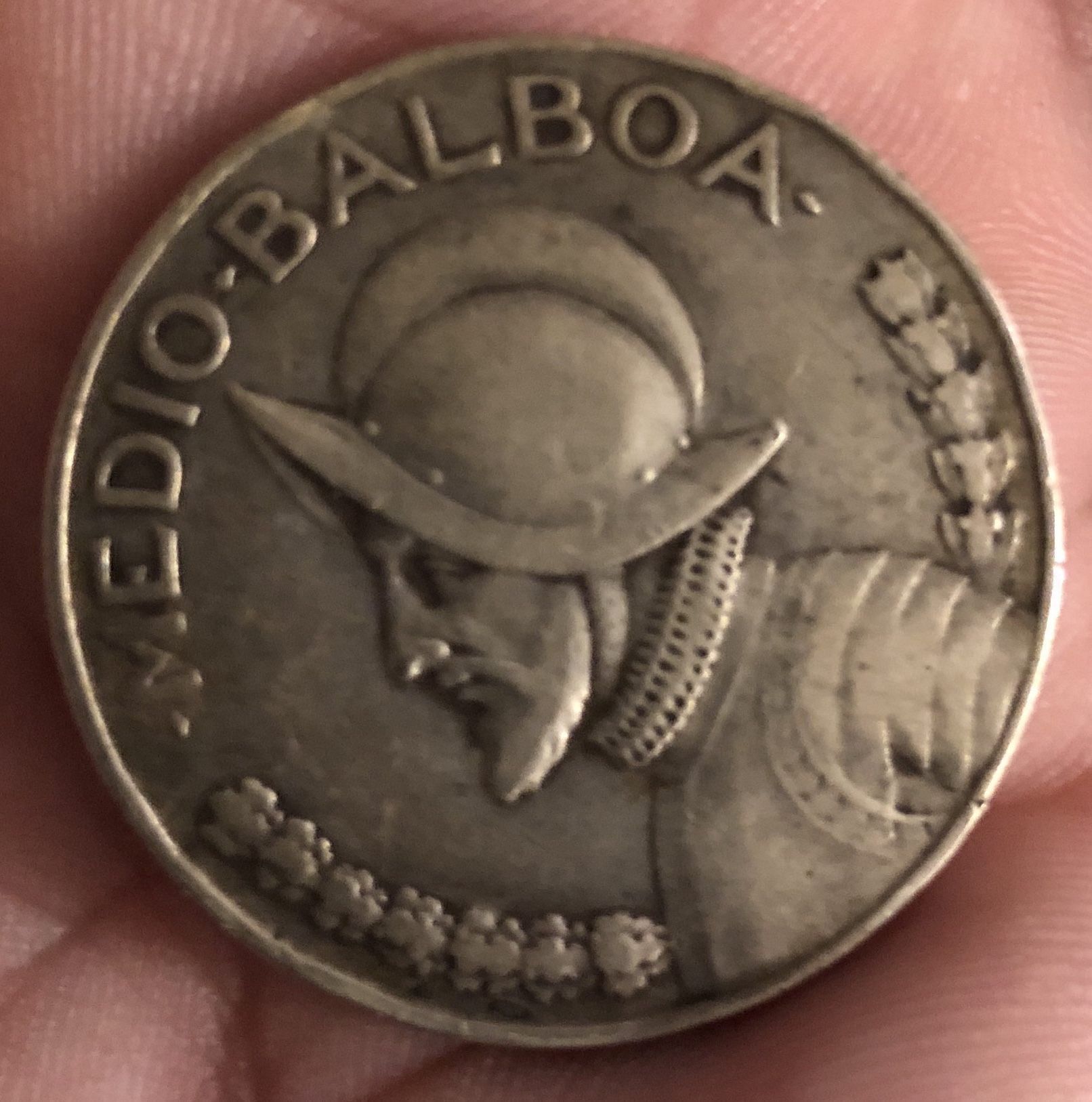 Panama, 1/2 Balboa, 1947, .900 silver, weight-12.50 g or 0.3617 oz., size-30.6mm, mintage-450,000 , KM#12.1 Krause world catalog # grade/value Fine-$20.00 Very Fine-$25.00 XF-$35.00