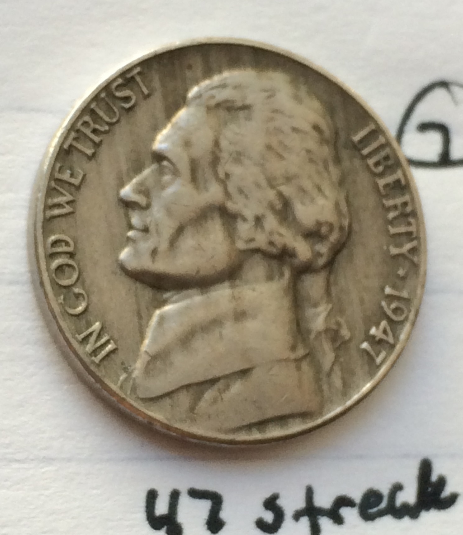 For a circulated 47 it looks pretty nice! As to the streaks, I would like to know as well. As there are cents with the mixture of the alloys being off (Woody) I wonder if that would apply to a nickel?