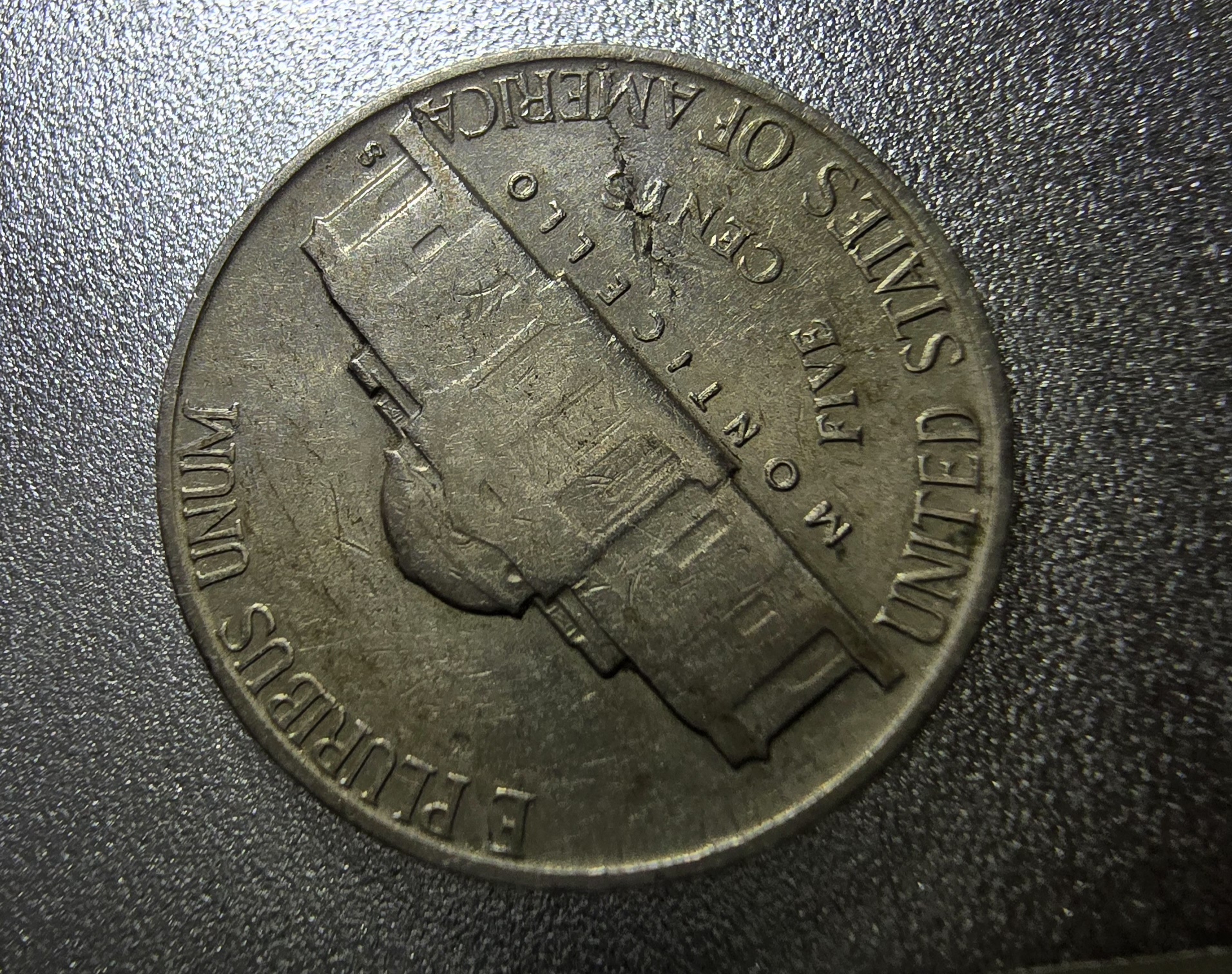The issue on the reverse is a Lamination crack. Planchet issue. It has nothing to do with Jefferson's ponytail.
